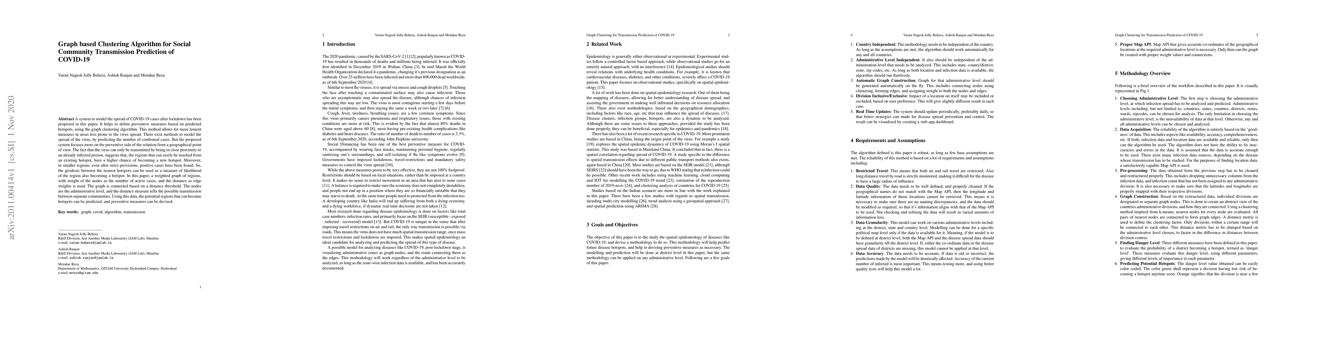 A graph-based clustering algorithm predicts areas at risk of COVID-19 hotspots based on geographical distance from existing cases.