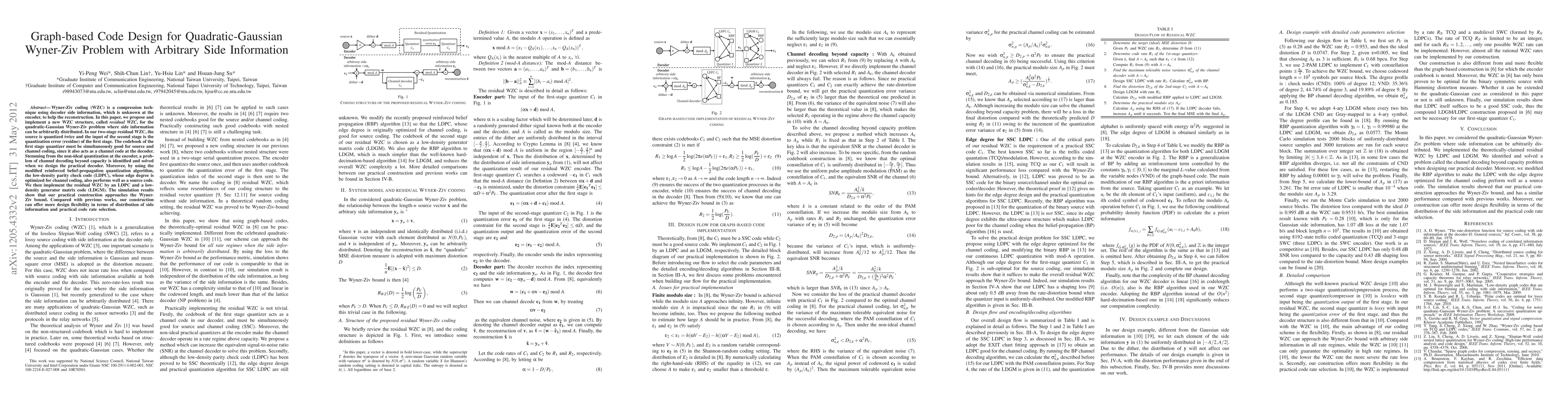 Wyner-Ziv coding (WZC) is a compression technique using decoder side information, which is unknown at the encoder, to help the reconstruction. In this paper, we propose and implement a new WZC structure, called residual WZC, for the quadratic-Gaussian Wyner-Ziv problem where side information can be arbitrarily distributed. In our two-stage residual WZC, the source is quantized twice and the input of the second stage is the quantization error (residue) of the first stage. The codebook of the first stage quantizer must be simultaneously good for source and channel coding, since it also acts as a channel code at the decoder. Stemming from the non-ideal quantization at the encoder, a problem of channel decoding beyond capacity is identified and solved when we design the practical decoder. Moreover,by using the modified reinforced belief-propagation quantization algorithm, the low-density parity check code (LDPC), whose edge degree is optimized for channel coding, also performs well as a source code. We then implement the residual WZC by an LDPC and a low density generator matrix code (LDGM). The simulation results show that our practical construction approaches the Wyner-Ziv bound. Compared with previous works, our construction can offer more design lexibility in terms of distribution of side information and practical code rate selection.