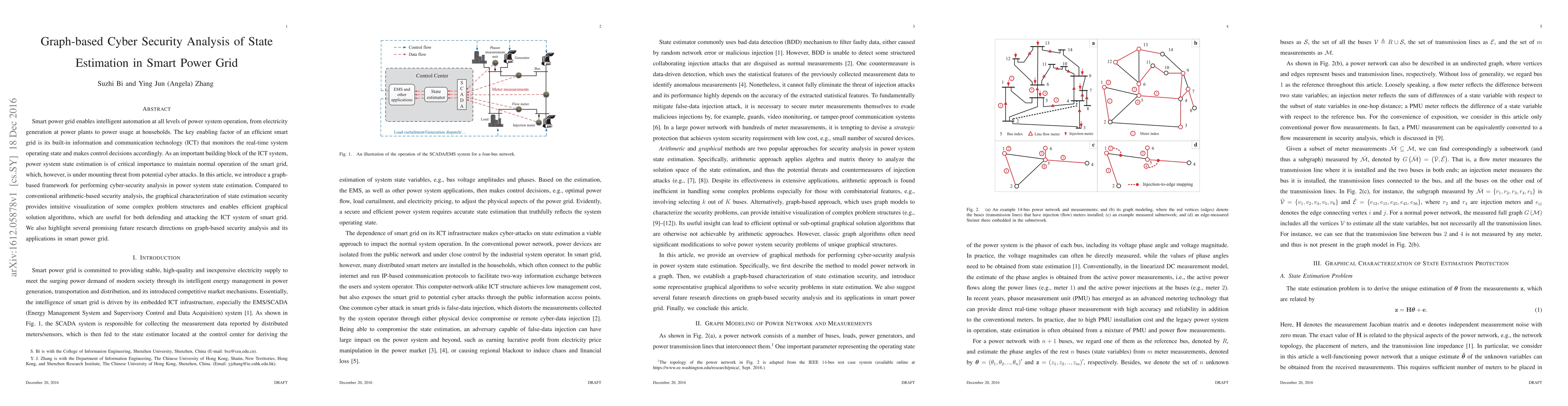 This paper introduces a graph-based framework for cyber-security analysis in smart power grid state estimation, offering intuitive visualization and efficient solution algorithms compared to traditional methods. It also outlines future research directions for enhancing smart grid security through graph-based approaches.