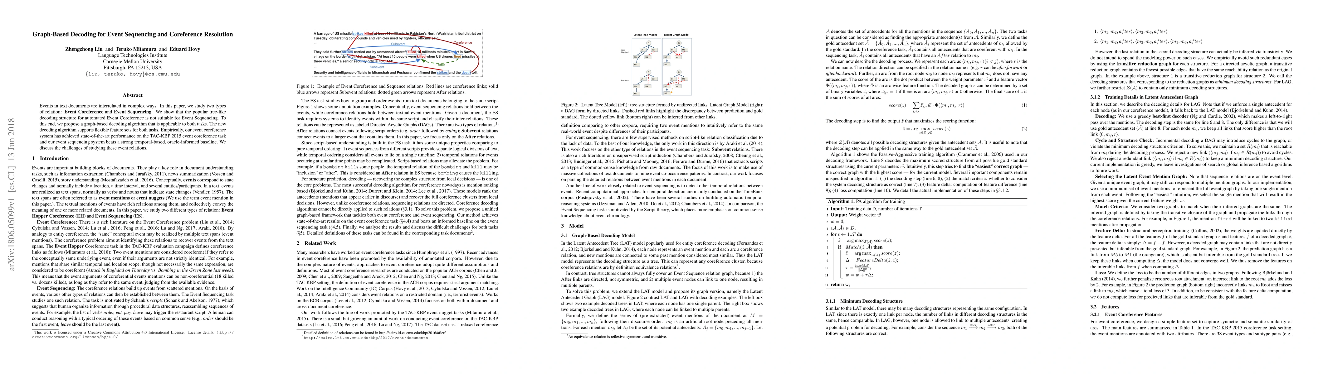 This paper proposes a graph-based decoding algorithm for Event Coreference and Event Sequencing, demonstrating that it outperforms traditional tree-based methods. The new approach achieves state-of-the-art results in event coreference and outperforms existing temporal baselines in event sequencing.