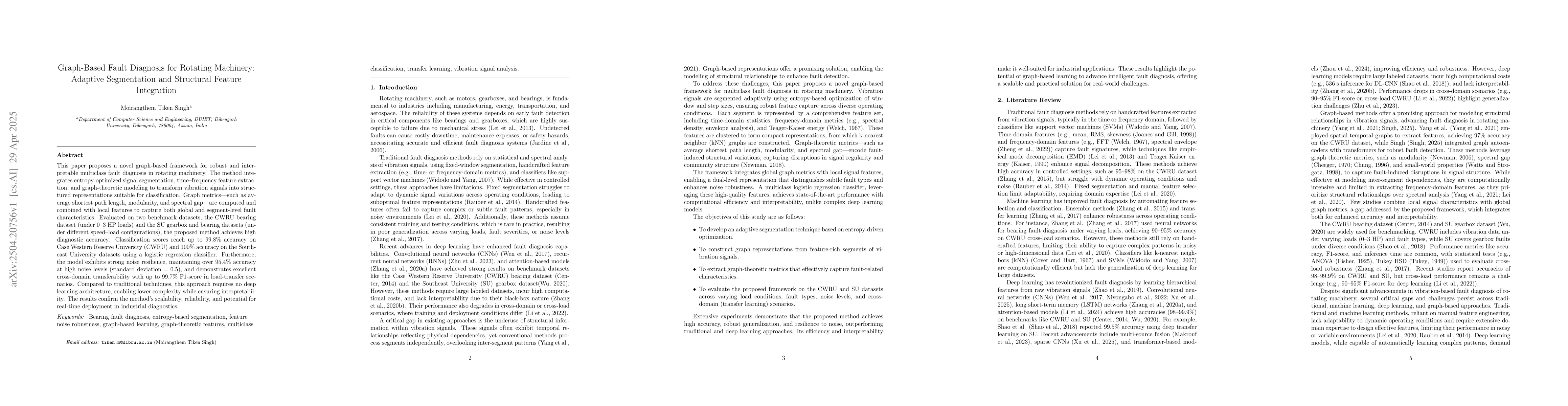 The paper introduces an adaptive graph-based framework that combines segment-level and global fault characteristics for robust and interpretable fault diagnosis.