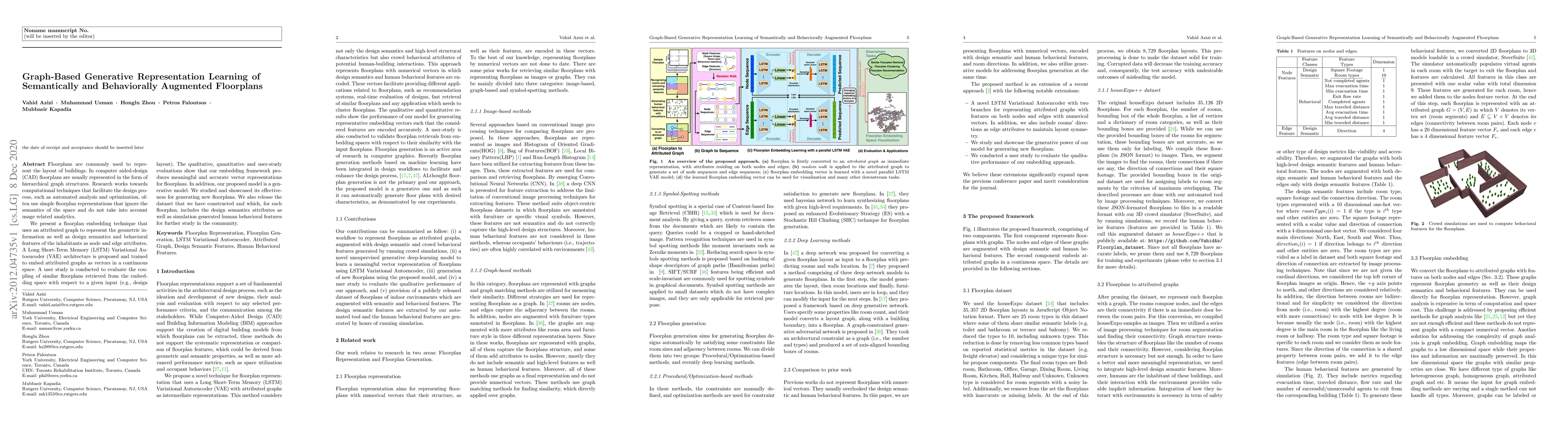 This paper proposes a graph-based generative representation learning technique for floorplans, embedding both geometric and semantic information along with behavioral features into an attributed graph. The model uses an LSTM VAE to generate continuous vector representations, which are shown to be meaningful and accurate through qualitative, quantitative, and user study evaluations, and is also effective for generating new floorplans.
