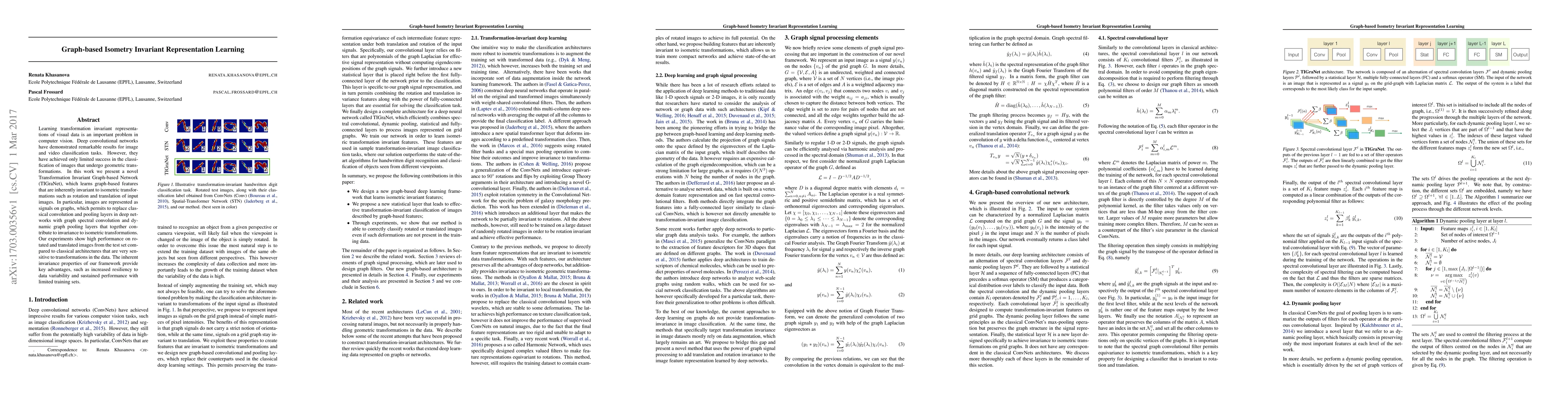 This paper introduces TIGraNet, a novel graph-based network that learns isometry invariant representations for visual data, using graph spectral convolution and dynamic graph pooling to achieve robustness against geometric transformations like rotation and translation. The method demonstrates superior performance on transformed images compared to traditional convolutional networks.