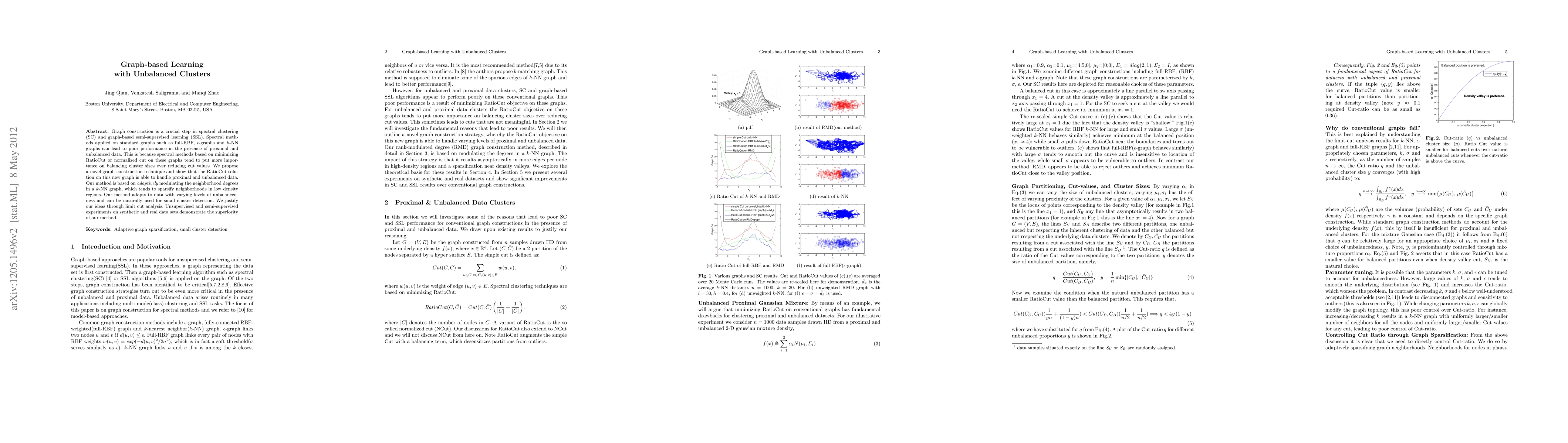 Graph construction is a crucial step in spectral clustering (SC) and graph-based semi-supervised learning (SSL). Spectral methods applied on standard graphs such as full-RBF, $\epsilon$-graphs and $k$-NN graphs can lead to poor performance in the presence of proximal and unbalanced data. This is because spectral methods based on minimizing RatioCut or normalized cut on these graphs tend to put more importance on balancing cluster sizes over reducing cut values. We propose a novel graph construction technique and show that the RatioCut solution on this new graph is able to handle proximal and unbalanced data. Our method is based on adaptively modulating the neighborhood degrees in a $k$-NN graph, which tends to sparsify neighborhoods in low density regions. Our method adapts to data with varying levels of unbalancedness and can be naturally used for small cluster detection. We justify our ideas through limit cut analysis. Unsupervised and semi-supervised experiments on synthetic and real data sets demonstrate the superiority of our method.