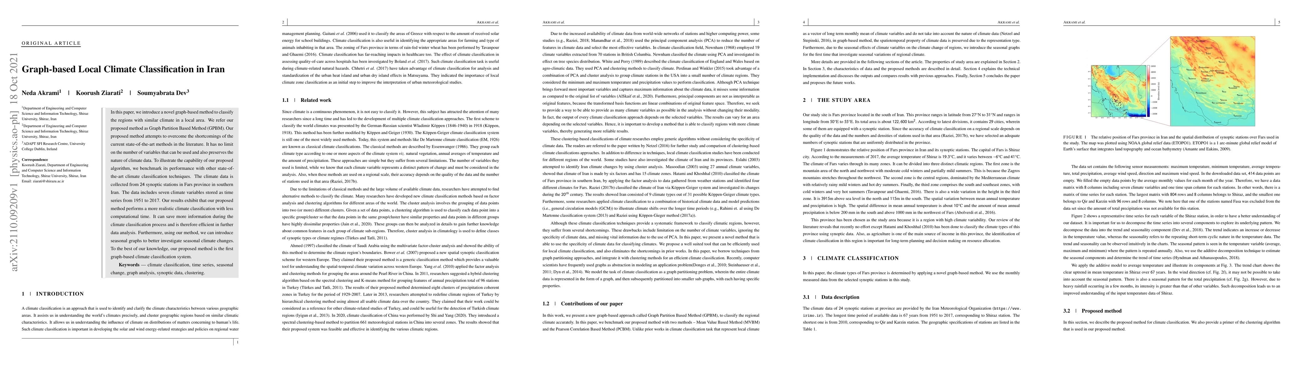 A new graph-based method called Graph Partition Based Method (GPBM) is proposed for local climate classification in Iran, outperforming state-of-the-art methods with improved realism and efficiency.