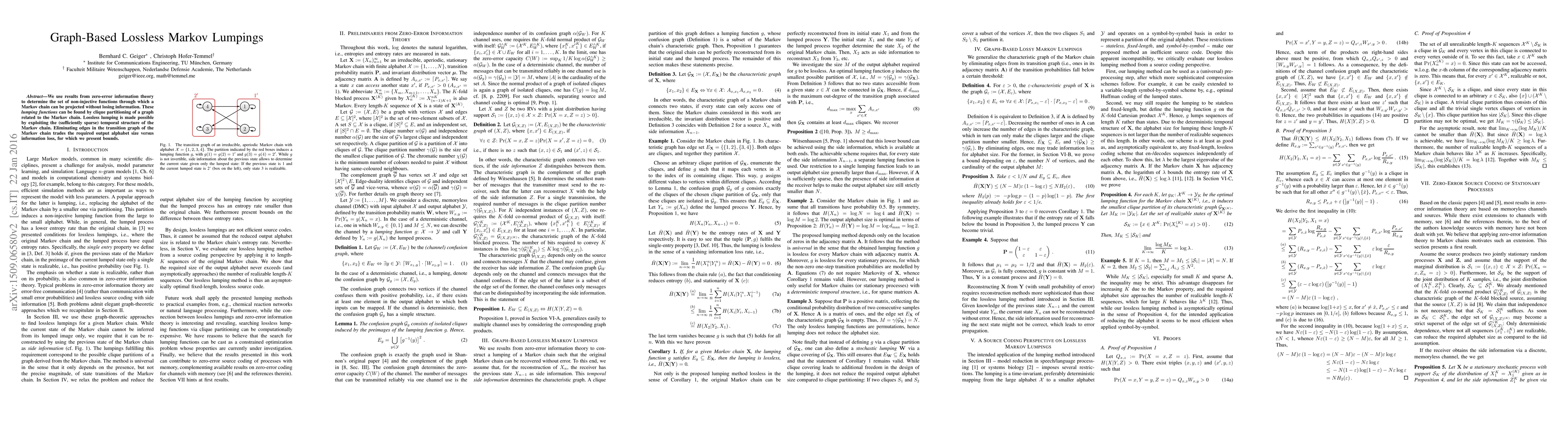 We use results from zero-error information theory to determine the set of non-injective functions through which a Markov chain can be projected without losing information. These lumping functions can be found by clique partitioning of a graph related to the Markov chain. Lossless lumping is made possible by exploiting the (sufficiently sparse) temporal structure of the Markov chain. Eliminating edges in the transition graph of the Markov chain trades the required output alphabet size versus information loss, for which we present bounds.
