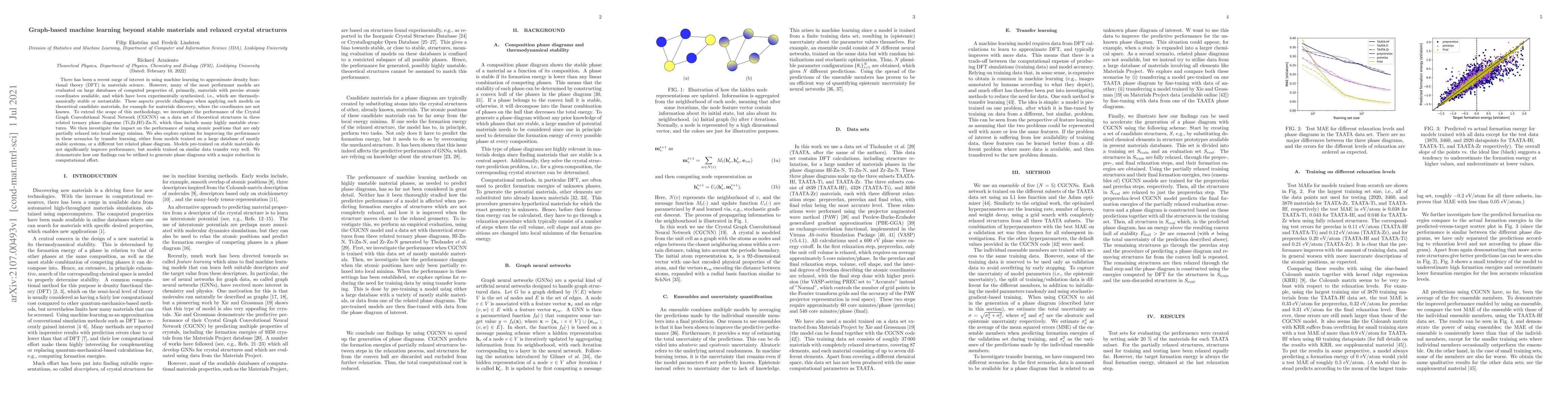 There has been a recent surge of interest in using machine learning to approximate density functional theory (DFT) in materials science. However, many of the most performant models are evaluated on large databases of computed properties of, primarily, materials with precise atomic coordinates available, and which have been experimentally synthesized, i.e., which are thermodynamically stable or metastable. These aspects provide challenges when applying such models on theoretical candidate materials, for example for materials discovery, where the coordinates are not known. To extend the scope of this methodology, we investigate the performance of the Crystal Graph Convolutional Neural Network (CGCNN) on a data set of theoretical structures in three related ternary phase diagrams (Ti,Zr,Hf)-Zn-N, which thus include many highly unstable structures. We then investigate the impact on the performance of using atomic positions that are only partially relaxed into local energy minima. We also explore options for improving the performance in these scenarios by transfer learning, either from models trained on a large database of mostly stable systems, or a different but related phase diagram. Models pre-trained on stable materials do not significantly improve performance, but models trained on similar data transfer very well. We demonstrate how our findings can be utilized to generate phase diagrams with a major reduction in computational effort.