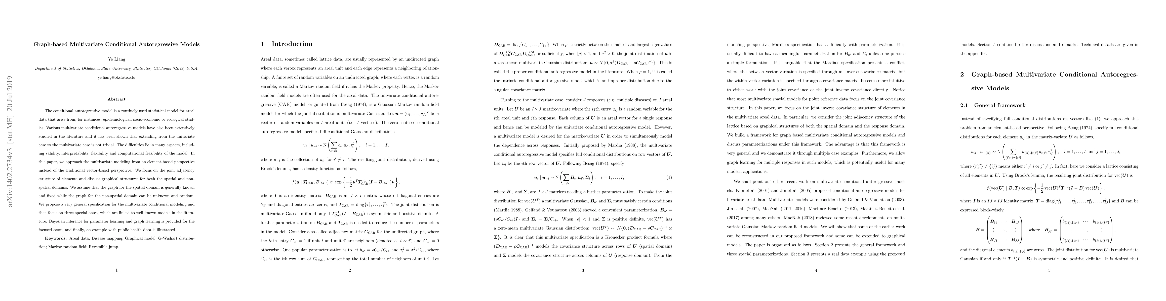 The conditional autoregressive model is a routinely used statistical model for areal data that arise from, for instances, epidemiological, socio-economic or ecological studies. Various multivariate conditional autoregressive models have also been extensively studied in the literature and it has been shown that extending from the univariate case to the multivariate case is not trivial. The difficulties lie in many aspects, including validity, interpretability, flexibility and computational feasibility of the model. In this paper, we approach the multivariate modeling from an element-based perspective instead of the traditional vector-based perspective. We focus on the joint adjacency structure of elements and discuss graphical structures for both the spatial and non-spatial domains. We assume that the graph for the spatial domain is generally known and fixed while the graph for the non-spatial domain can be unknown and random. We propose a very general specification for the multivariate conditional modeling and then focus on three special cases, which are linked to well known models in the literature. Bayesian inference for parameter learning and graph learning is provided for the focused cases, and finally, an example with public health data is illustrated.