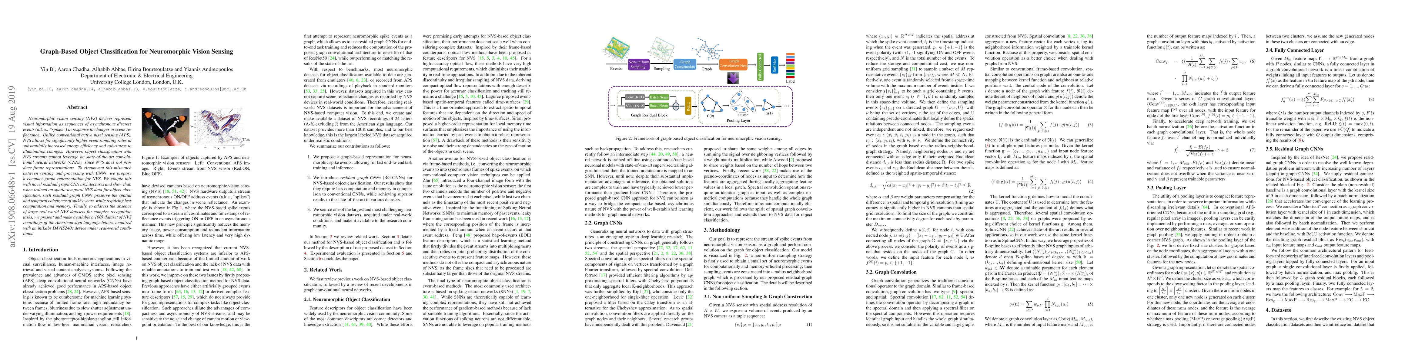 This paper proposes a graph-based approach to classify objects using neuromorphic vision sensing (NVS) data, which is event-driven and energy-efficient. It introduces residual graph convolutional neural networks (GCNNs) that effectively utilize NVS data without frame representations, achieving higher efficiency and robustness.