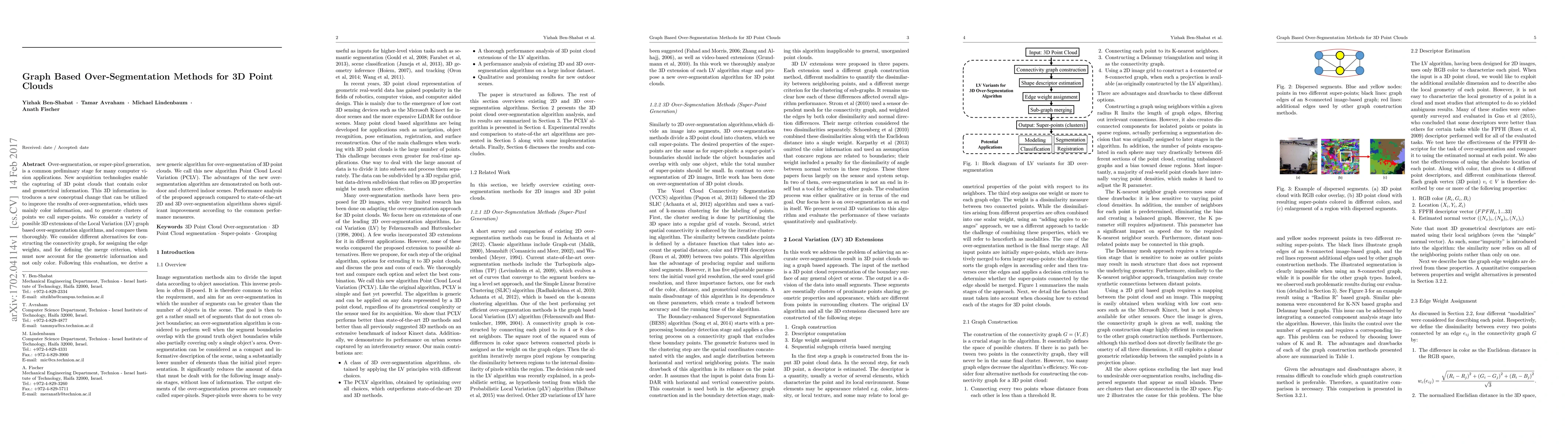 Over-segmentation, or super-pixel generation, is a common preliminary stage for many computer vision applications. New acquisition technologies enable the capturing of 3D point clouds that contain color and geometrical information. This 3D information introduces a new conceptual change that can be utilized to improve the results of over-segmentation, which uses mainly color information, and to generate clusters of points we call super-points. We consider a variety of possible 3D extensions of the Local Variation (LV) graph based over-segmentation algorithms, and compare them thoroughly. We consider different alternatives for constructing the connectivity graph, for assigning the edge weights, and for defining the merge criterion, which must now account for the geometric information and not only color. Following this evaluation, we derive a new generic algorithm for over-segmentation of 3D point clouds. We call this new algorithm Point Cloud Local Variation (PCLV). The advantages of the new over-segmentation algorithm are demonstrated on both outdoor and cluttered indoor scenes. Performance analysis of the proposed approach compared to state-of-the-art 2D and 3D over-segmentation algorithms shows significant improvement according to the common performance measures.
