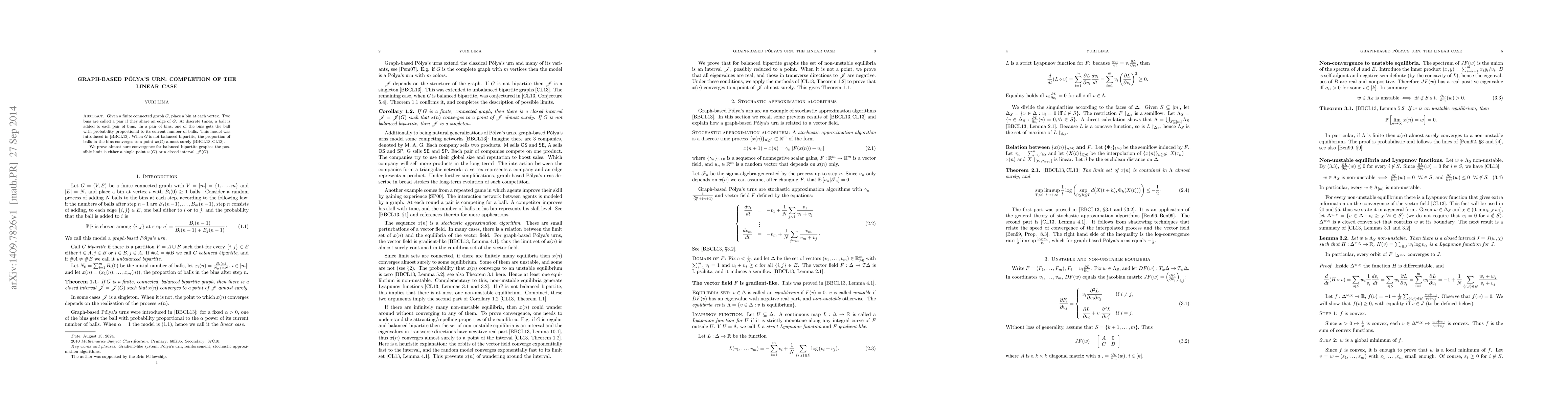 Given a finite connected graph $G$, place a bin at each vertex. Two bins are called a pair if they share an edge of $G$. At discrete times, a ball is added to each pair of bins. In a pair of bins, one of the bins gets the ball with probability proportional to its current number of balls. Previous works proved that when $G$ is not balanced bipartite, the proportion of balls in the bins converges to a point $w(G)$ almost surely. We prove almost sure convergence for balanced bipartite graphs: the possible limit is either a single point $w(G)$ or a closed interval $\mathcal J(G)$.
