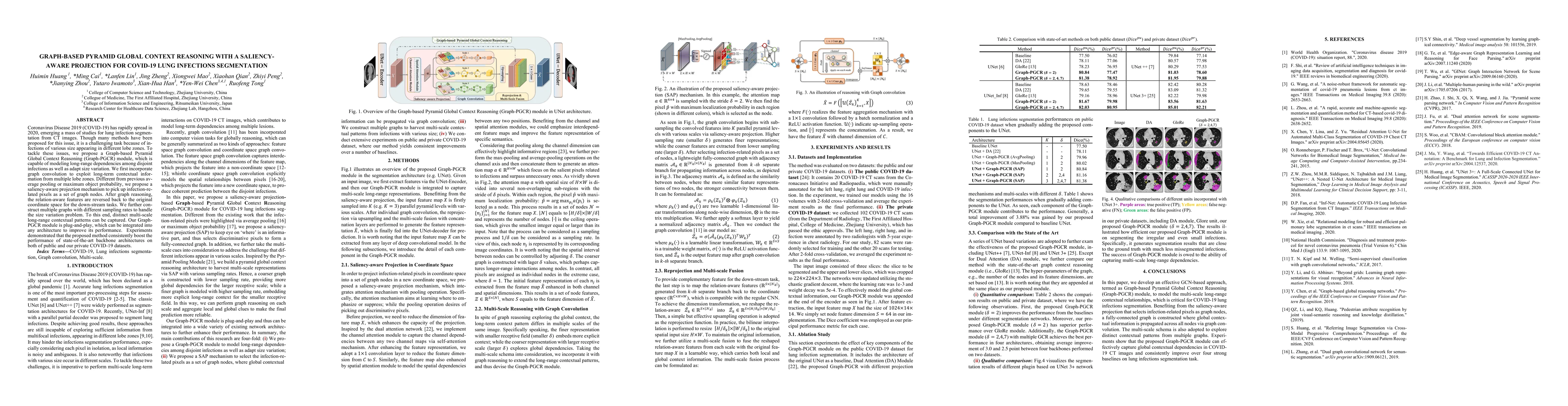 Coronavirus Disease 2019 (COVID-19) has rapidly spread in 2020, emerging a mass of studies for lung infection segmentation from CT images. Though many methods have been proposed for this issue, it is a challenging task because of infections of various size appearing in different lobe zones. To tackle these issues, we propose a Graph-based Pyramid Global Context Reasoning (Graph-PGCR) module, which is capable of modeling long-range dependencies among disjoint infections as well as adapt size variation. We first incorporate graph convolution to exploit long-term contextual information from multiple lobe zones. Different from previous average pooling or maximum object probability, we propose a saliency-aware projection mechanism to pick up infection-related pixels as a set of graph nodes. After graph reasoning, the relation-aware features are reversed back to the original coordinate space for the down-stream tasks. We further construct multiple graphs with different sampling rates to handle the size variation problem. To this end, distinct multi-scale long-range contextual patterns can be captured. Our Graph-PGCR module is plug-and-play, which can be integrated into any architecture to improve its performance. Experiments demonstrated that the proposed method consistently boost the performance of state-of-the-art backbone architectures on both of public and our private COVID-19 datasets.