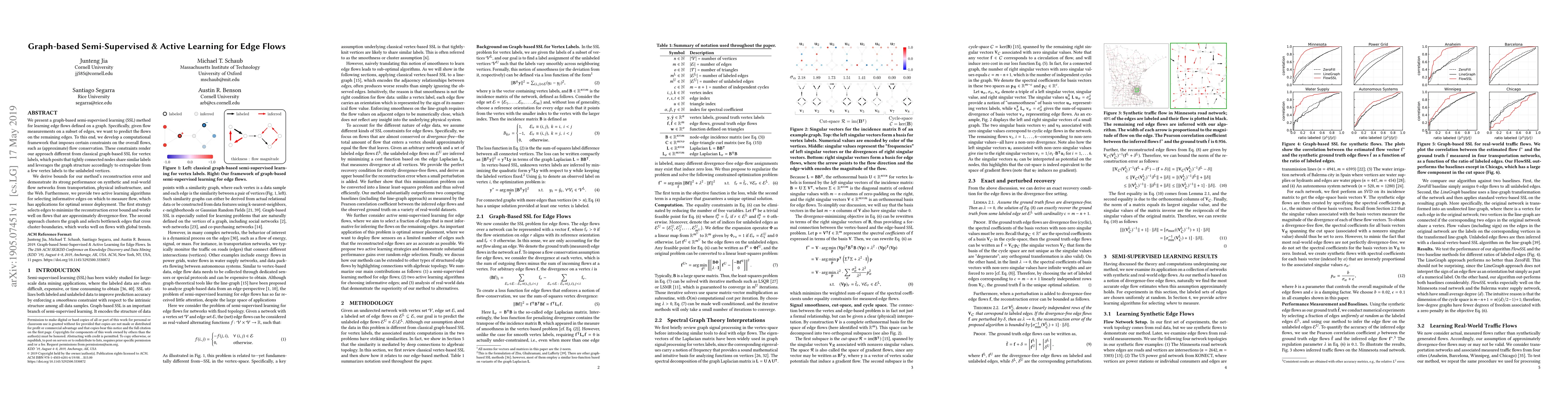 This paper presents a graph-based semi-supervised learning method for predicting edge flows on a graph, enforcing flow conservation constraints, and demonstrates its effectiveness on various real-world networks. It also introduces two active learning algorithms for optimal sensor deployment based on minimizing reconstruction error and selecting bottleneck edges.