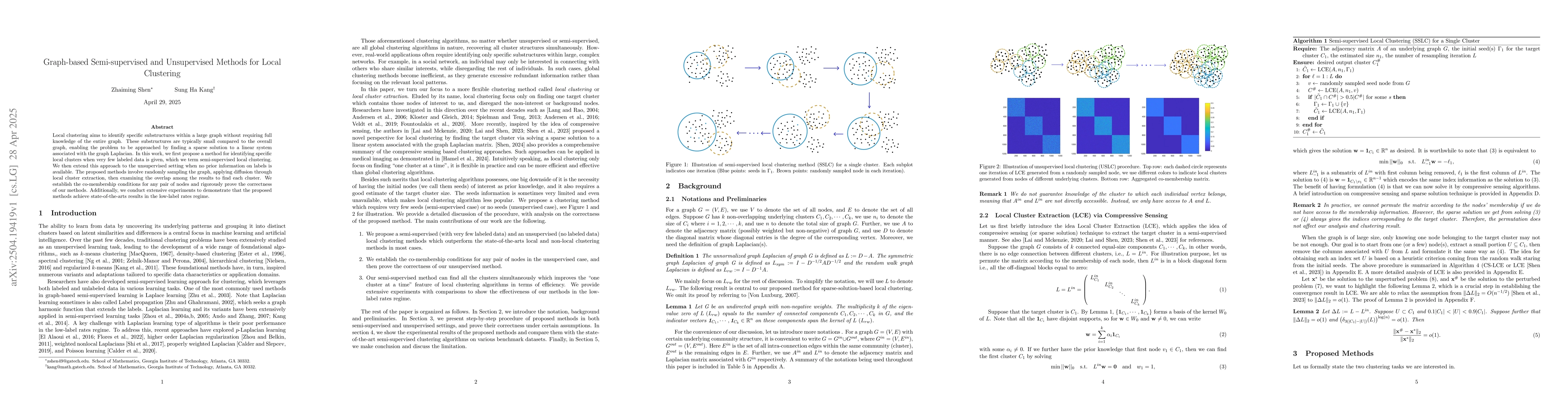 This paper proposes two graph-based methods for local clustering: one for semi-supervised learning with few labeled data points, and another for unsupervised learning without prior labels. The methods achieve state-of-the-art results in the low-label rates regime.