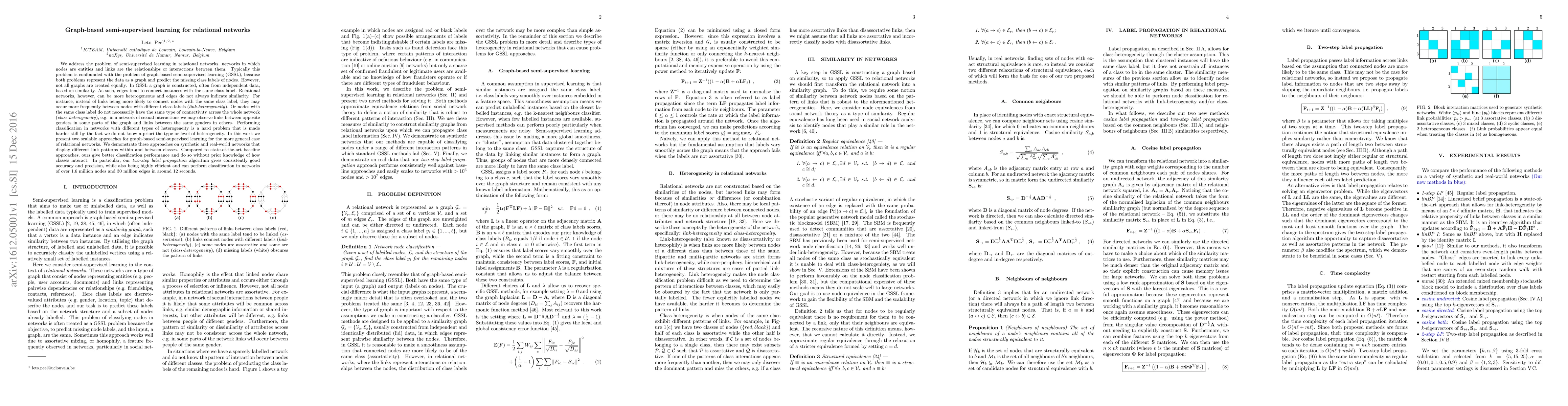 This paper proposes scalable graph-based semi-supervised learning methods for relational networks, which differ from traditional graph-based approaches due to link-heterogeneity and class-heterogeneity. The authors demonstrate superior classification performance on both synthetic and real-world networks without prior knowledge of class interactions.