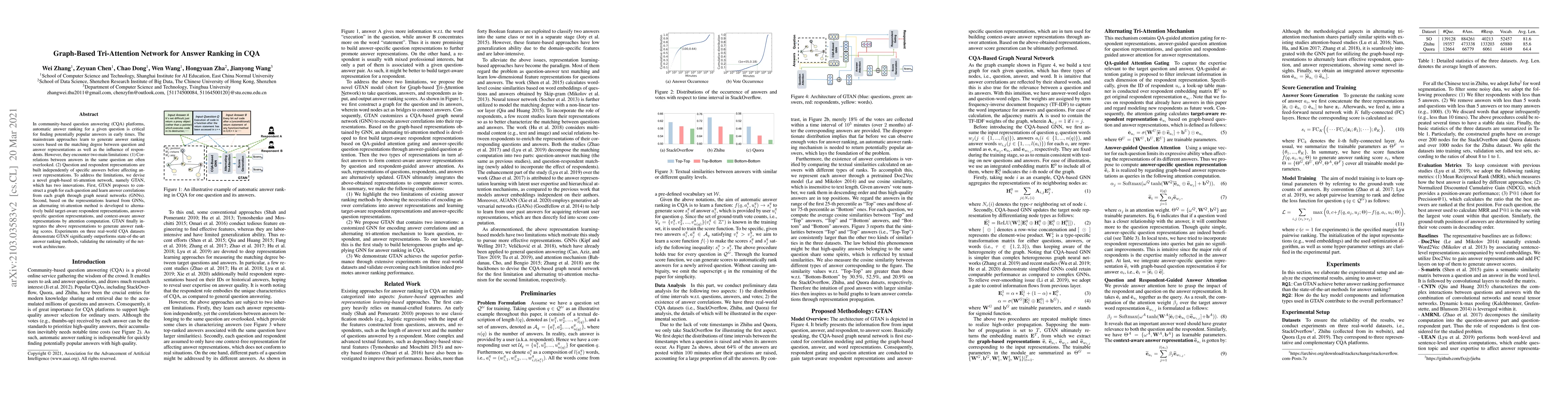 A novel graph-based tri-attention network (GTAN) is proposed for answer ranking in community-based question answering (CQA) platforms, outperforming state-of-the-art methods with improved correlation detection and representation learning.