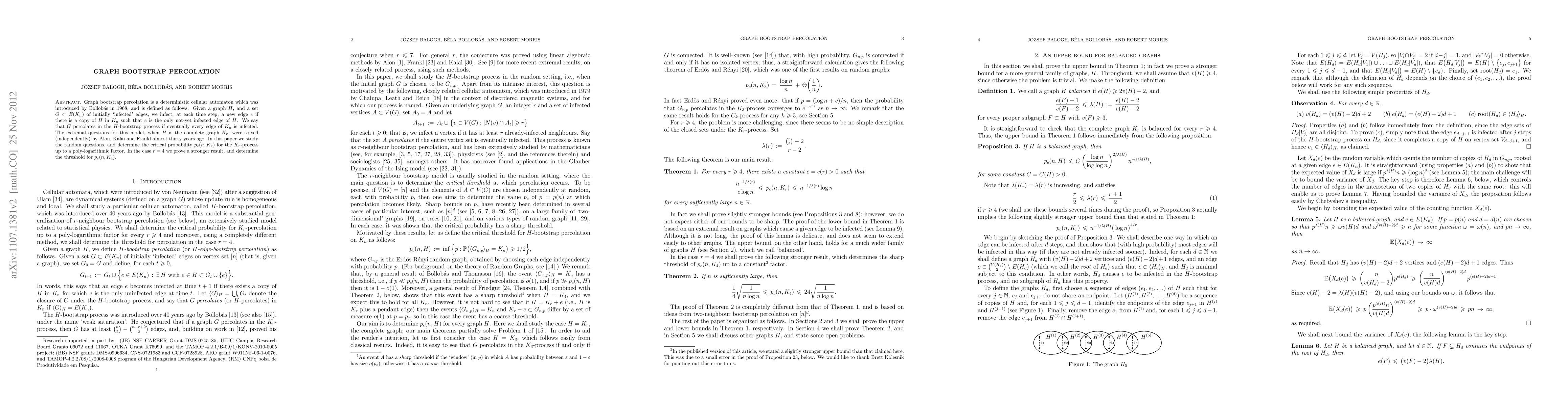 The research employs graph bootstrap percolation, a deterministic cellular automaton introduced by Bollobás in 1968, to study extremal questions and random questions for the model, particularly focusing on the complete graph $K_r$.