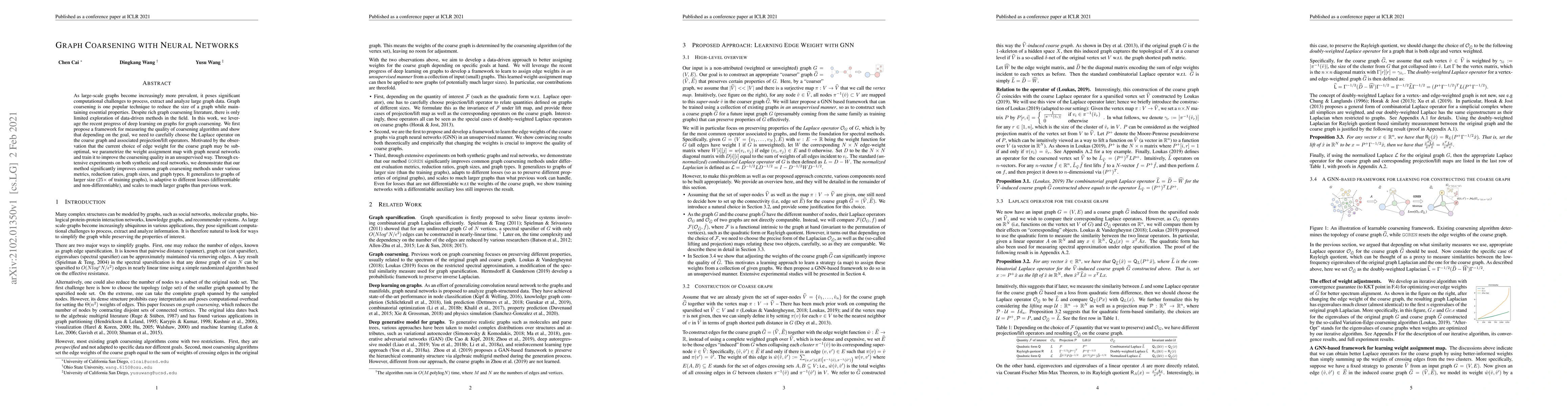 This paper proposes a neural network-based framework for graph coarsening, utilizing graph neural networks to optimize edge weight assignment in coarsened graphs. The method demonstrates significant improvements over traditional coarsening techniques across various metrics and scales effectively to larger graphs.