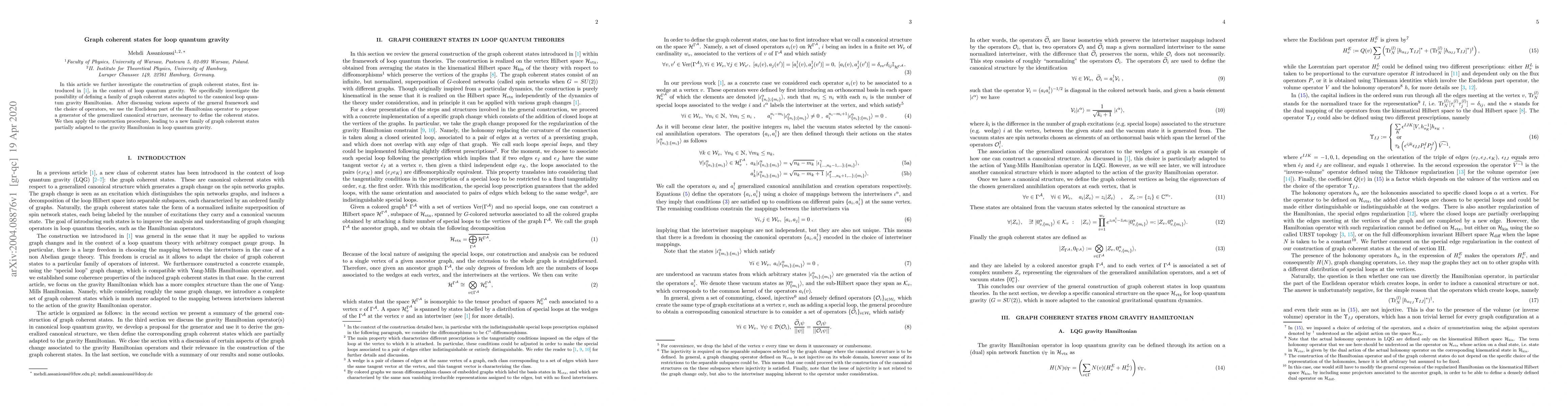 This paper explores the development of graph coherent states in loop quantum gravity, specifically aiming to define a family adapted to the canonical Hamiltonian. The authors propose a generator using the Euclidean part of the Hamiltonian to construct a new family of graph coherent states partially suited to the gravity Hamiltonian.