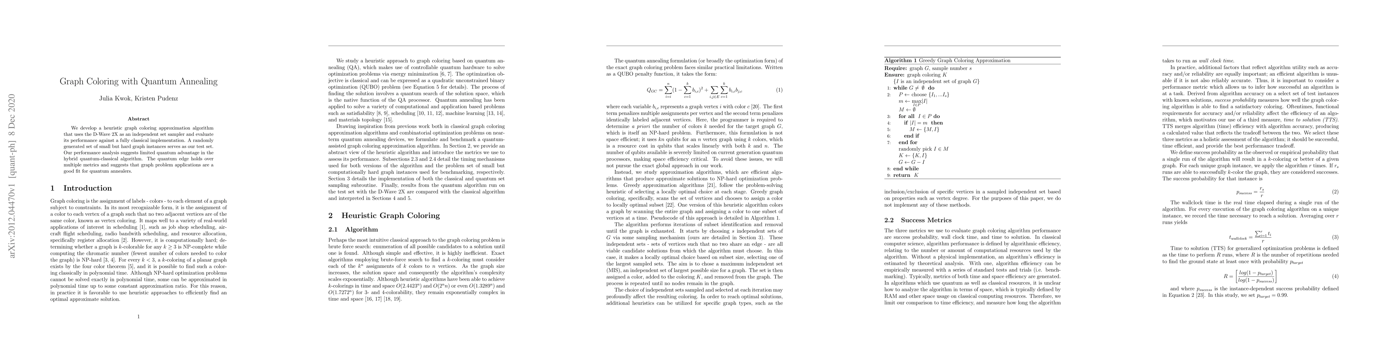 A novel hybrid approach combining quantum annealing with a classical graph coloring algorithm was developed, demonstrating improved scalability and robustness for solving large-scale graph coloring problems.