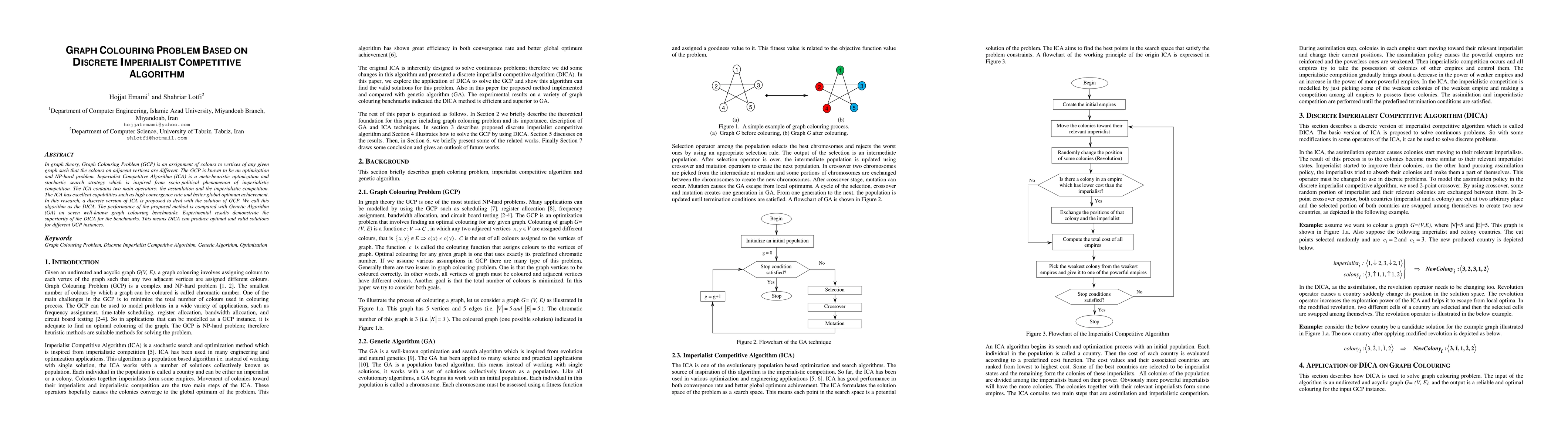 The discrete imperialist competitive algorithm was adapted and applied to graph coloring problems.