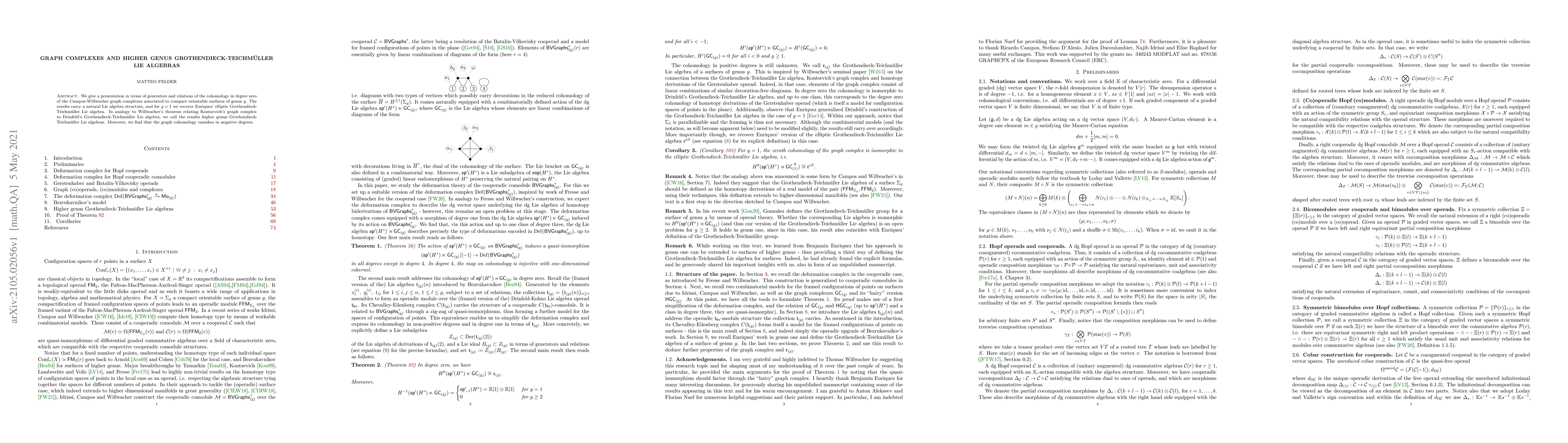 We give a presentation in terms of generators and relations of the cohomology in degree zero of the Campos-Willwacher graph complexes associated to compact orientable surfaces of genus $g$. The results carry a natural Lie algebra structure, and for $g=1$ we recover Enriquez' elliptic Grothendieck-Teichm\"uller Lie algebra. In analogy to Willwacher's theorem relating Kontsevich's graph complex to Drinfeld's Grothendieck-Teichm\"uller Lie algebra, we call the results higher genus Grothendieck-Teichm\"uller Lie algebras. Moreover, we find that the graph cohomology vanishes in negative degrees.