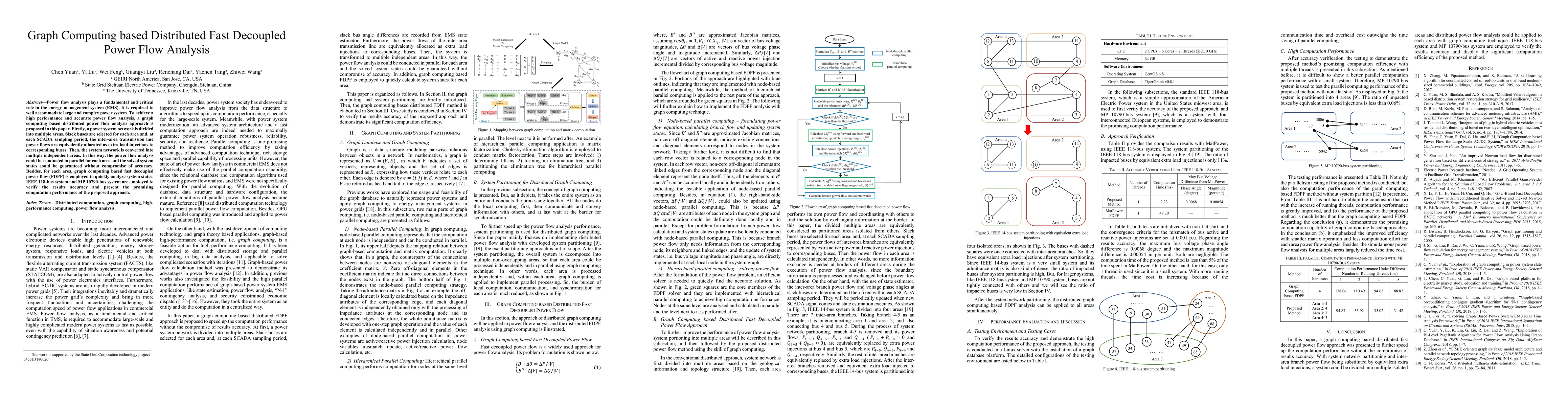 This paper proposes a graph computing based distributed method for fast decoupled power flow analysis to efficiently handle large and complex power systems. It divides the system into independent areas, enabling parallel computation and accurate results without loss of precision.