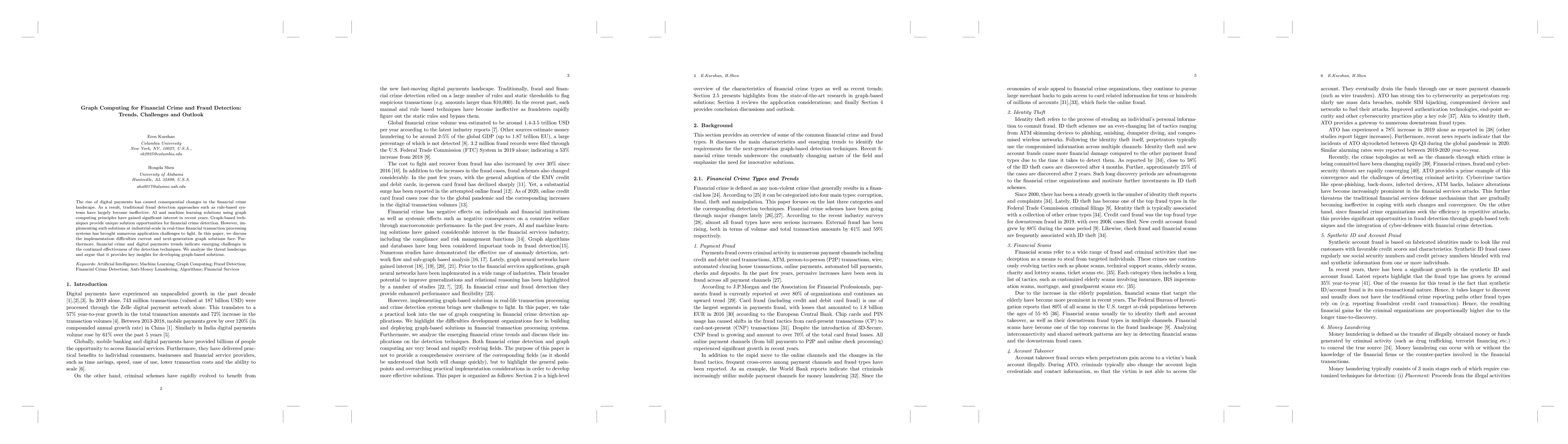 This paper explores the use of graph computing for financial crime and fraud detection, highlighting its potential and the challenges in implementing it at an industrial scale. It discusses emerging trends in digital payments and their impact on the effectiveness of current detection methods, emphasizing the need for advanced graph-based solutions.