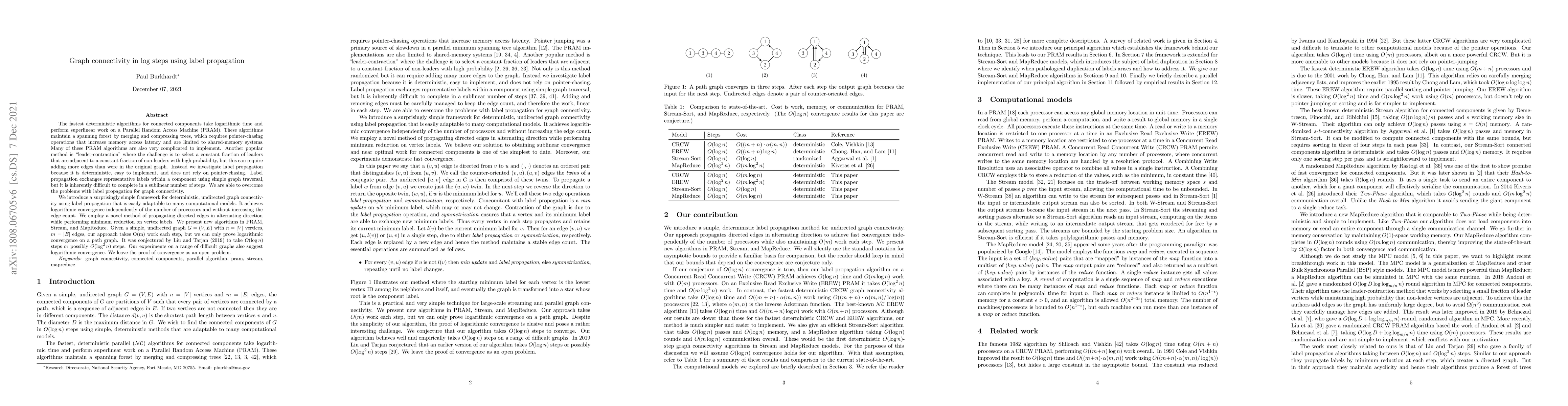 Researchers developed a simple framework for deterministic graph connectivity using label propagation, achieving linear edge count each step with sublinear convergence in some models, but with logarithmic convergence proven only on path graphs.