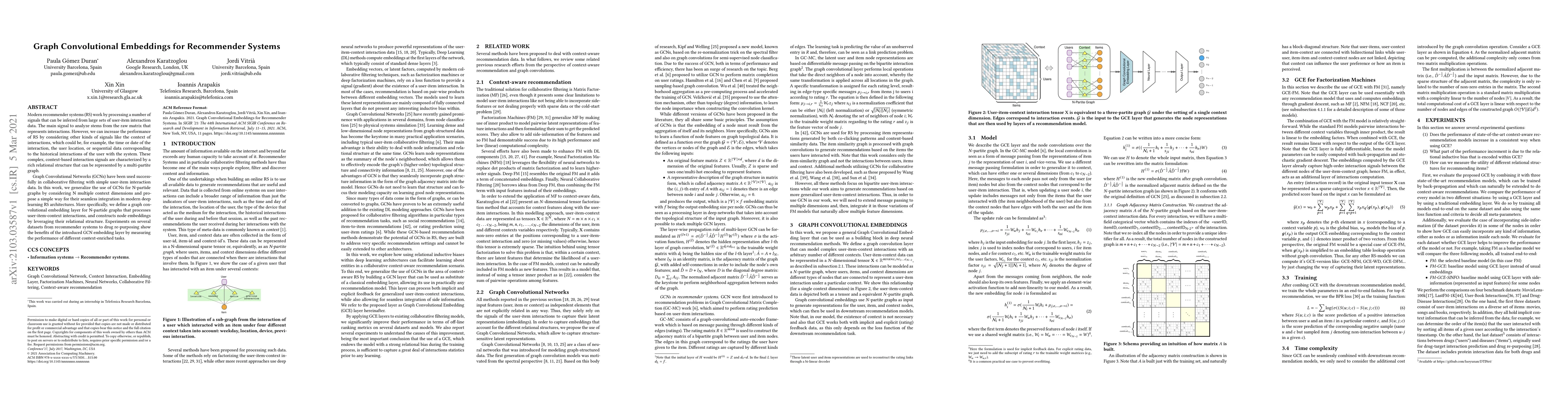 This paper proposes a graph convolutional embedding layer for N-partite graphs to enhance recommender systems by integrating context-based interaction signals. Experiments demonstrate improved performance in various context-enriched tasks using this method.