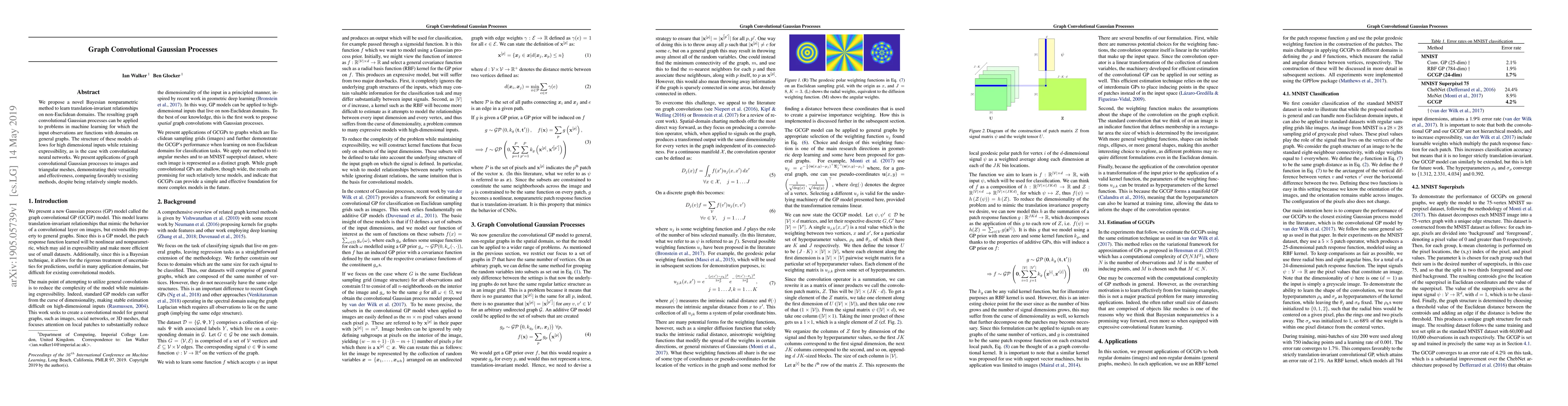 This paper introduces a novel Bayesian nonparametric method called graph convolutional Gaussian processes to learn translation-invariant relationships on non-Euclidean domains. The method is shown to be effective for high-dimensional inputs and is applied to images and triangular meshes, outperforming existing methods despite its simplicity.