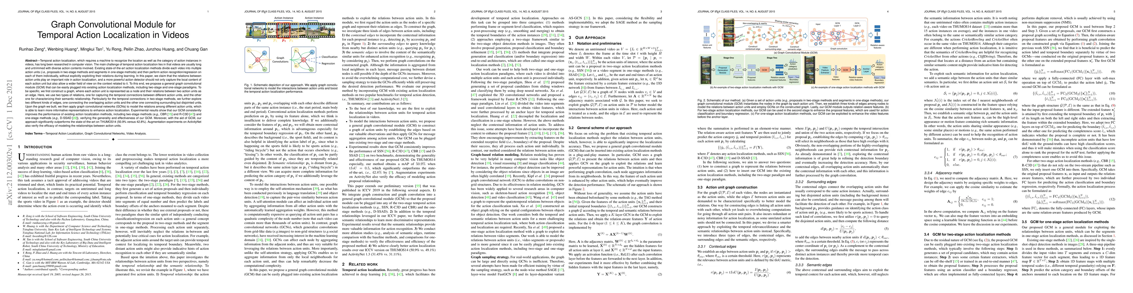 This paper proposes a Graph Convolutional Module (GCM) to enhance temporal action localization by incorporating relations between action units. The GCM constructs a graph where nodes represent action units and edges capture temporal and semantic connections, enabling graph convolutional networks to learn more informative representations, thereby improving localization performance across various existing methods.