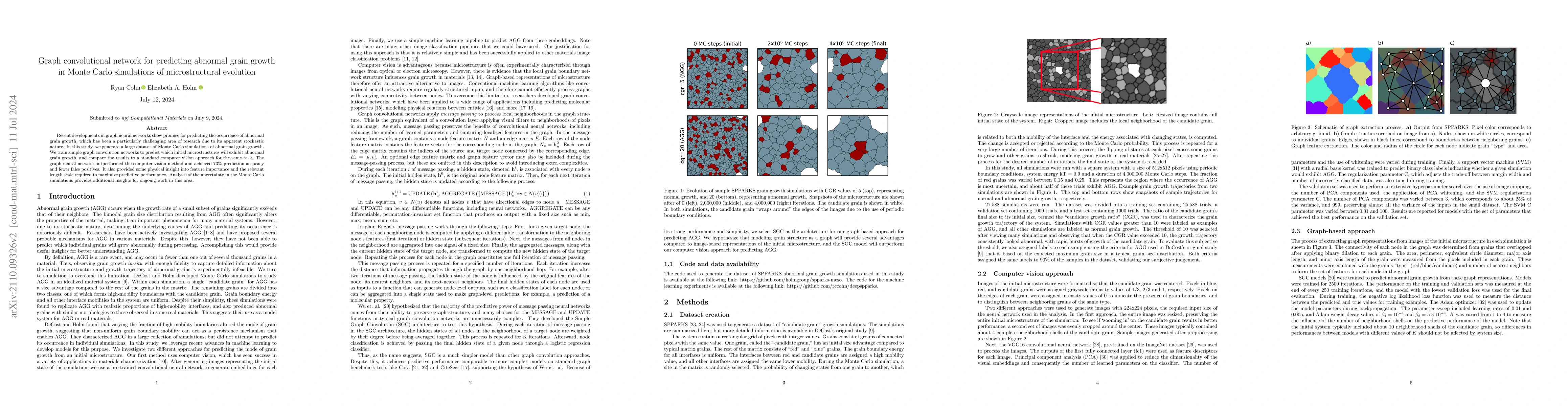 This study employs graph convolutional networks to predict abnormal grain growth in Monte Carlo simulations, achieving 73% accuracy and fewer false positives compared to a standard computer vision method. The graph neural network also offers insights into feature importance and relevant length scales.