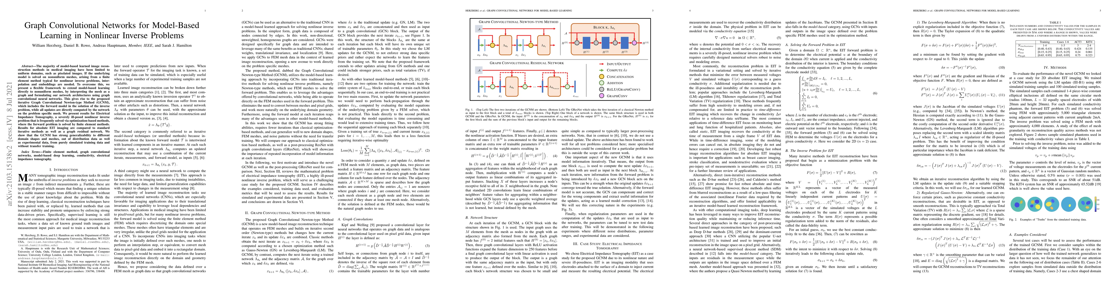 The majority of model-based learned image reconstruction methods in medical imaging have been limited to uniform domains, such as pixelated images. If the underlying model is solved on nonuniform meshes, arising from a finite element method typical for nonlinear inverse problems, interpolation and embeddings are needed. To overcome this, we present a flexible framework to extend model-based learning directly to nonuniform meshes, by interpreting the mesh as a graph and formulating our network architectures using graph convolutional neural networks. This gives rise to the proposed iterative Graph Convolutional Newton-type Method (GCNM), which includes the forward model in the solution of the inverse problem, while all updates are directly computed by the network on the problem specific mesh. We present results for Electrical Impedance Tomography, a severely ill-posed nonlinear inverse problem that is frequently solved via optimization-based methods, where the forward problem is solved by finite element methods. Results for absolute EIT imaging are compared to standard iterative methods as well as a graph residual network. We show that the GCNM has strong generalizability to different domain shapes and meshes, out of distribution data as well as experimental data, from purely simulated training data and without transfer training.
