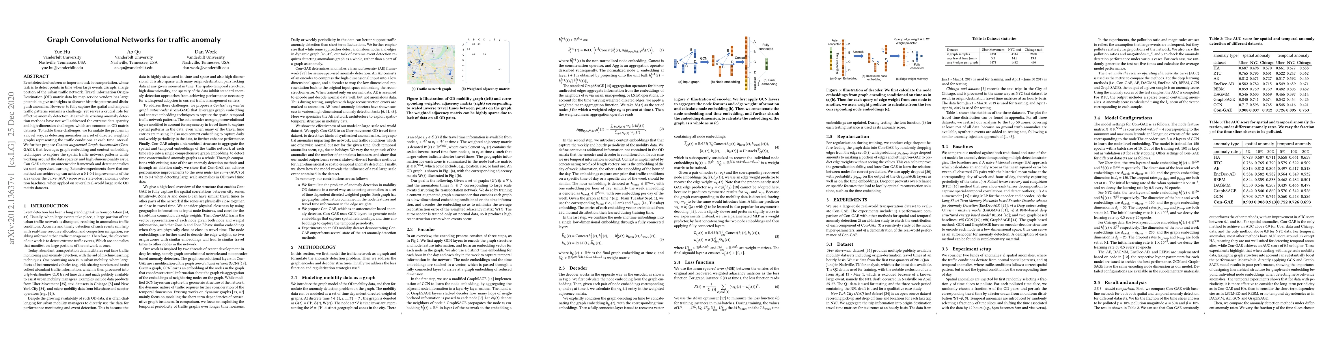 A novel approach using Graph Convolutional Networks and Context-Augmented Graph Autoencoder detects traffic anomalies in large-scale urban traffic networks with improved accuracy over state-of-the-art methods.