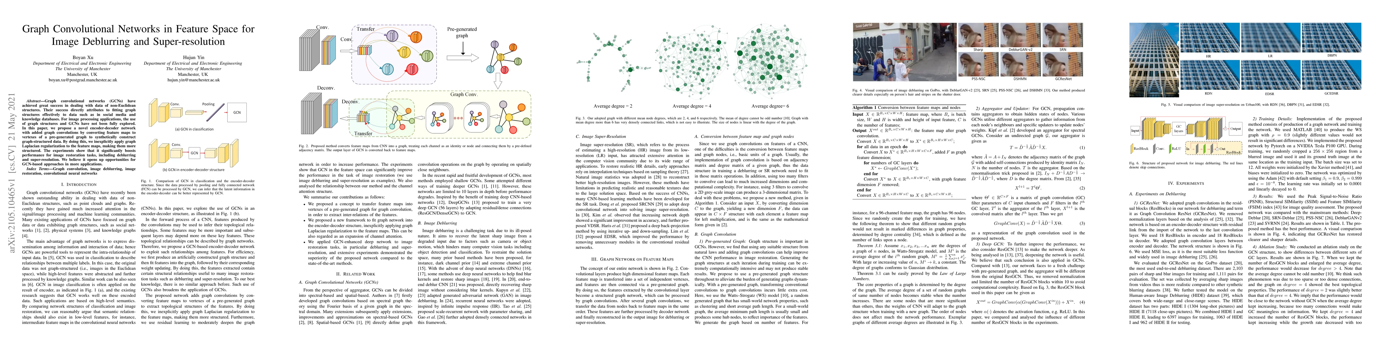A new image processing technique using Graph Convolutional Networks (GCNs) achieves improved results for deblurring and super-resolution tasks. By incorporating graph structures into feature maps, the approach boosts performance without explicit graph regularization.