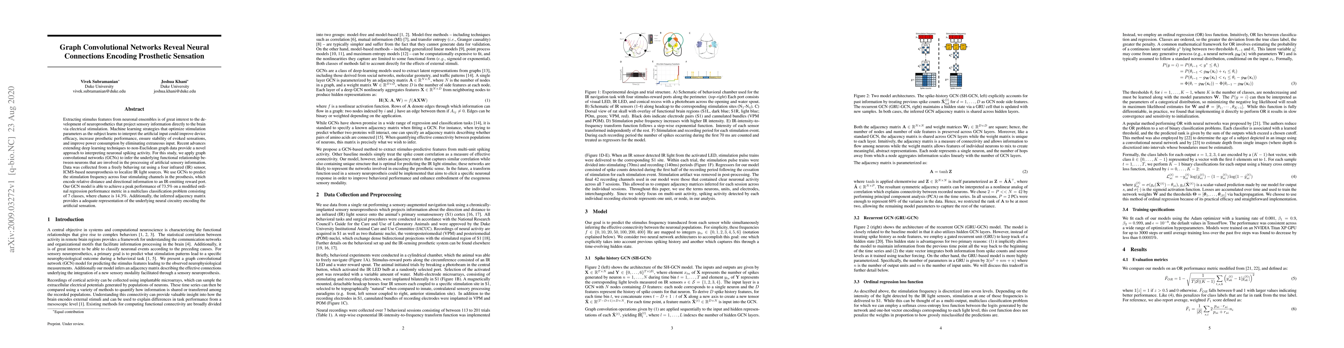 Extracting stimulus features from neuronal ensembles is of great interest to the development of neuroprosthetics that project sensory information directly to the brain via electrical stimulation. Machine learning strategies that optimize stimulation parameters as the subject learns to interpret the artificial input could improve device efficacy, increase prosthetic performance, ensure stability of evoked sensations, and improve power consumption by eliminating extraneous input. Recent advances extending deep learning techniques to non-Euclidean graph data provide a novel approach to interpreting neuronal spiking activity. For this study, we apply graph convolutional networks (GCNs) to infer the underlying functional relationship between neurons that are involved in the processing of artificial sensory information. Data was collected from a freely behaving rat using a four infrared (IR) sensor, ICMS-based neuroprosthesis to localize IR light sources. We use GCNs to predict the stimulation frequency across four stimulating channels in the prosthesis, which encode relative distance and directional information to an IR-emitting reward port. Our GCN model is able to achieve a peak performance of 73.5% on a modified ordinal regression performance metric in a multiclass classification problem consisting of 7 classes, where chance is 14.3%. Additionally, the inferred adjacency matrix provides a adequate representation of the underlying neural circuitry encoding the artificial sensation.