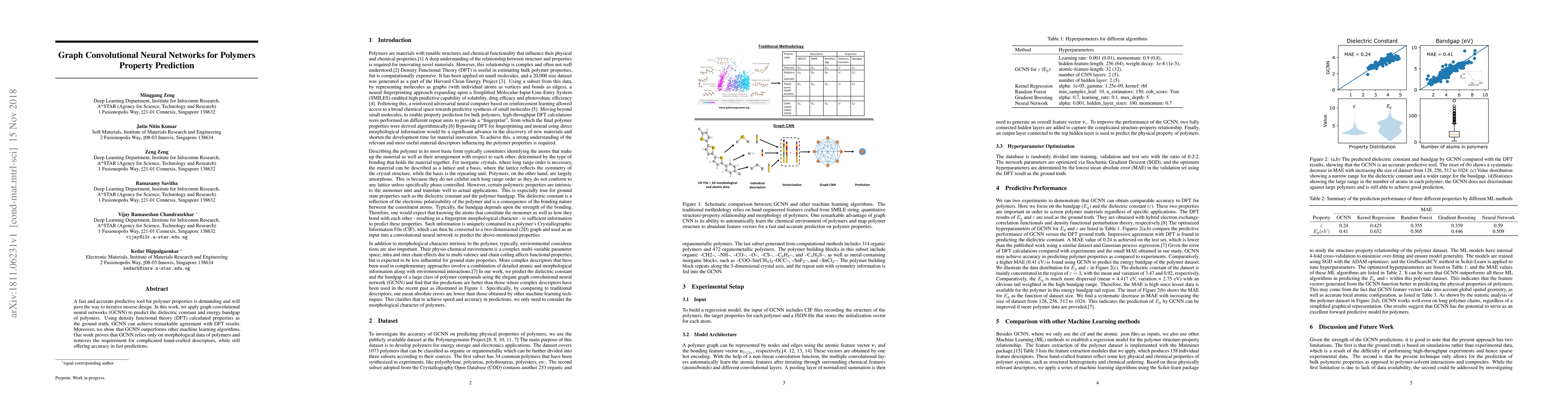 This research applies graph convolutional neural networks (GCNN) to predict polymer properties, specifically the dielectric constant and energy bandgap, achieving high accuracy comparable to density functional theory (DFT) calculations. The study demonstrates that GCNN outperforms other machine learning methods and requires only morphological data, eliminating the need for complex descriptors.