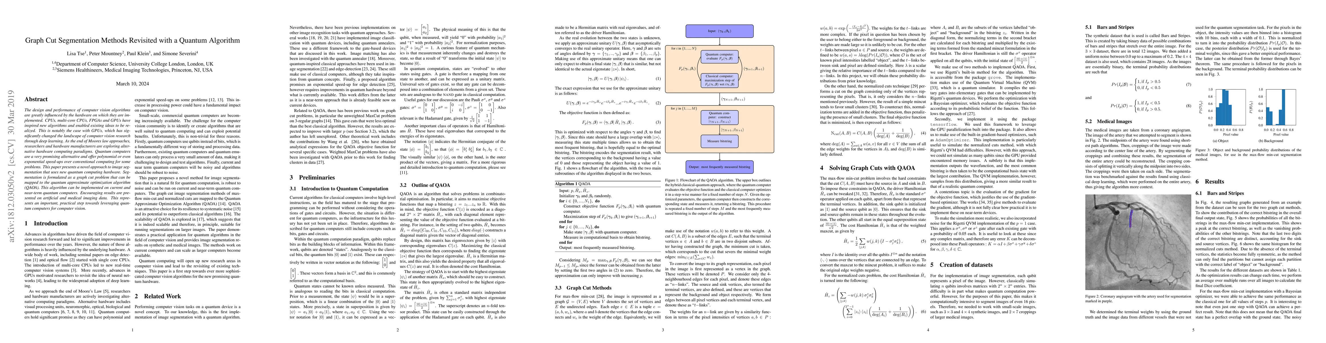 The design and performance of computer vision algorithms are greatly influenced by the hardware on which they are implemented. CPUs, multi-core CPUs, FPGAs and GPUs have inspired new algorithms and enabled existing ideas to be realized. This is notably the case with GPUs, which has significantly changed the landscape of computer vision research through deep learning. As the end of Moores law approaches, researchers and hardware manufacturers are exploring alternative hardware computing paradigms. Quantum computers are a very promising alternative and offer polynomial or even exponential speed-ups over conventional computing for some problems. This paper presents a novel approach to image segmentation that uses new quantum computing hardware. Segmentation is formulated as a graph cut problem that can be mapped to the quantum approximate optimization algorithm (QAOA). This algorithm can be implemented on current and near-term quantum computers. Encouraging results are presented on artificial and medical imaging data. This represents an important, practical step towards leveraging quantum computers for computer vision.