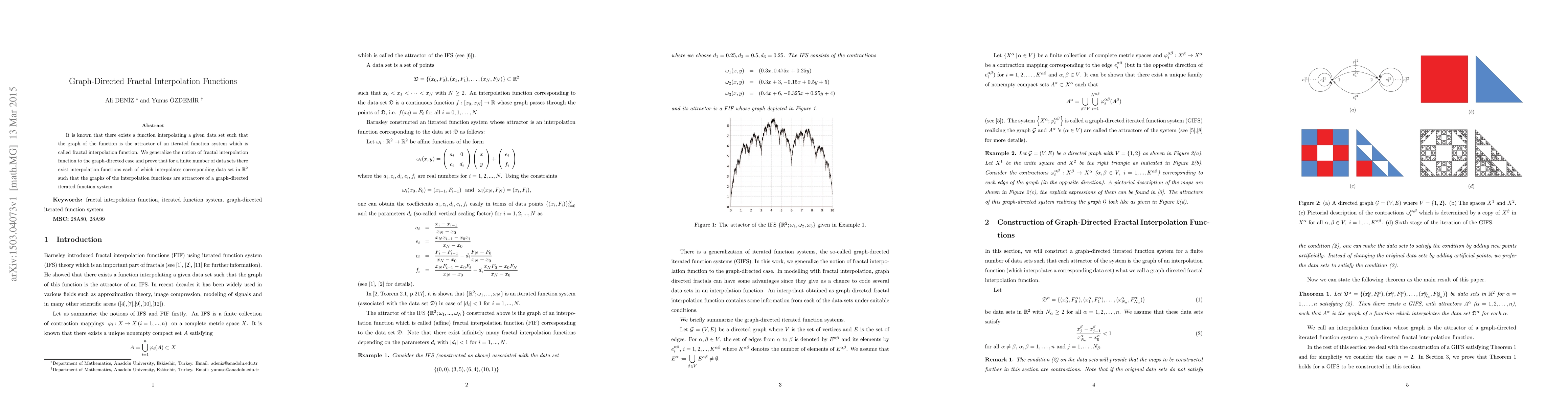 This paper generalizes fractal interpolation functions to graph-directed cases, proving the existence of interpolation functions for finite data sets in $\mathbb{R}^2$ whose graphs are attractors of graph-directed iterated function systems.