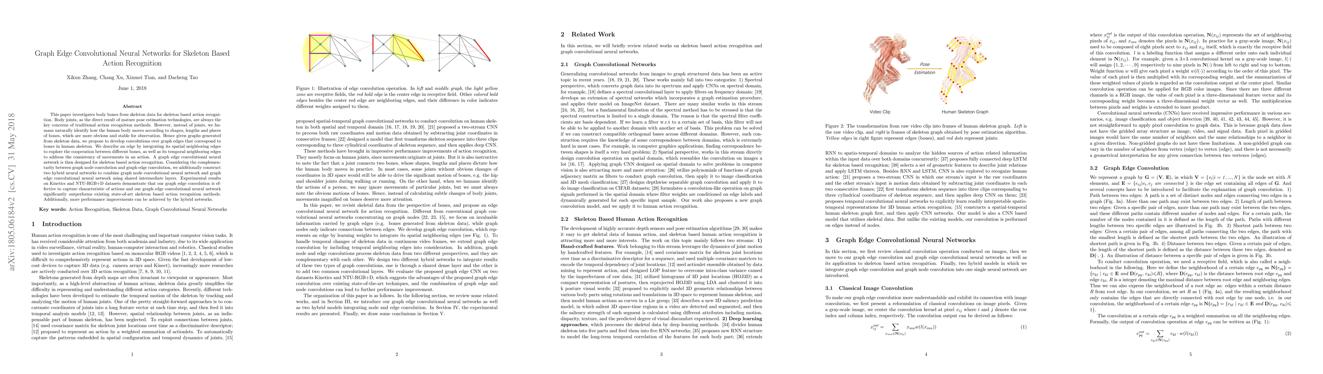 This paper proposes a graph edge convolutional neural network for skeleton-based action recognition, focusing on bones rather than joints to identify movement patterns. Experimental results show significant performance improvements over existing methods, with further gains from hybrid neural networks combining graph node and edge convolutions.