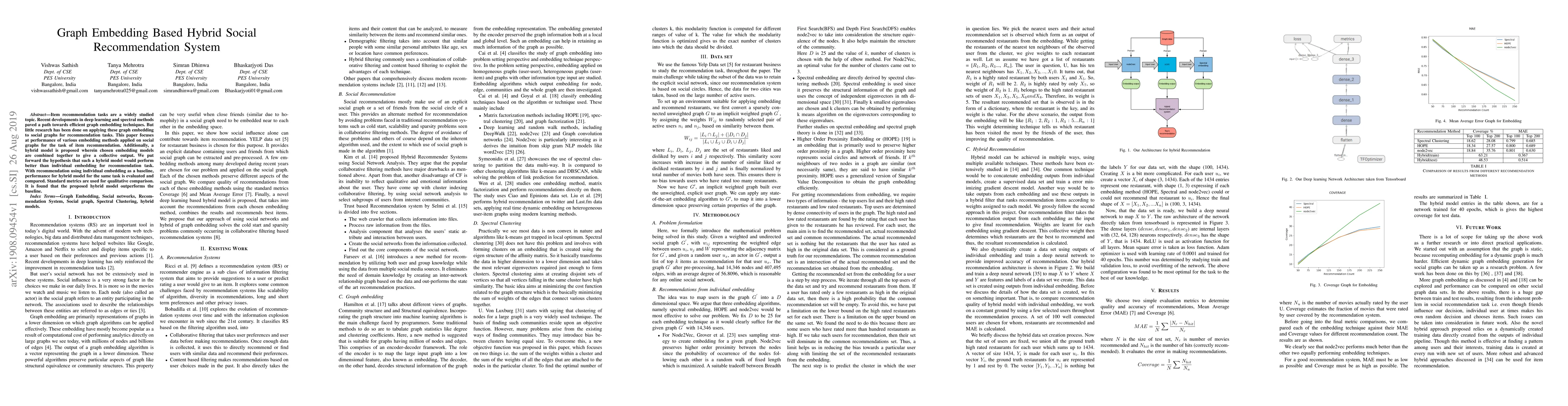 This work is novel in its focus on applying graph embedding techniques to social graphs for item recommendation tasks and validating the effectiveness of a hybrid model.