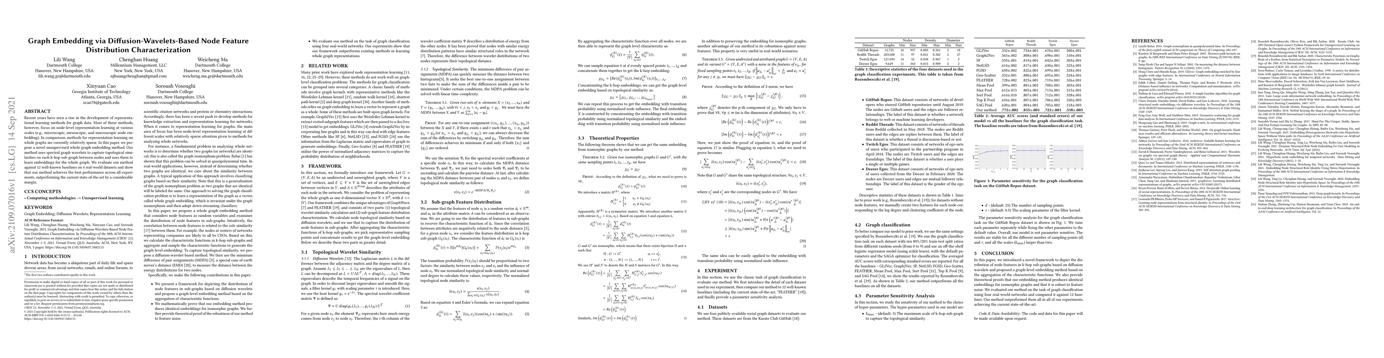 This paper introduces a novel unsupervised method for whole graph embedding using spectral graph wavelets to capture topological similarities across k-hop sub-graphs. The proposed method outperforms existing state-of-the-art baselines on 4 real-world datasets, demonstrating superior performance in graph representation learning.