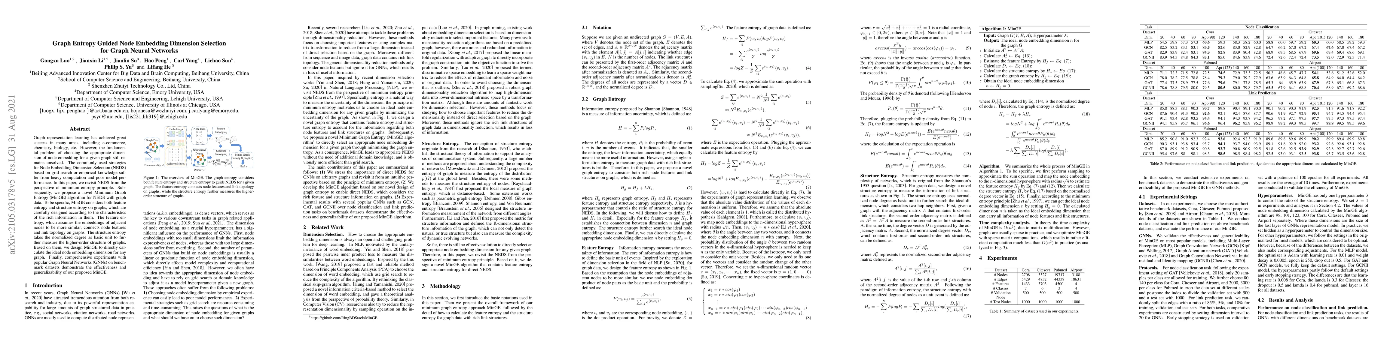 This paper proposes a Minimum Graph Entropy (MinGE) algorithm for selecting the optimal dimension of node embeddings in graph neural networks by considering both feature and structure entropy, demonstrating improved performance over traditional methods. Experiments show MinGE's effectiveness and generalizability across various GNNs on benchmark datasets.