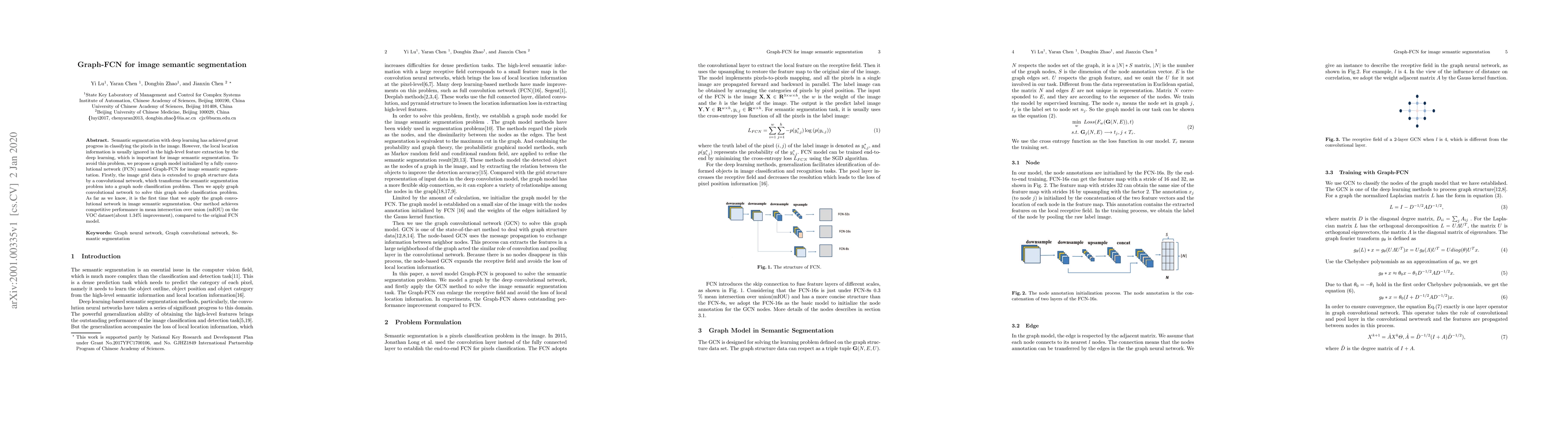 The paper proposes Graph-FCN, a method that integrates graph convolutional networks with fully convolutional networks to enhance image semantic segmentation by incorporating local location information. This approach transforms the segmentation problem into a graph node classification task, achieving a 1.34% improvement in mIOU on the VOC dataset compared to the original FCN model.