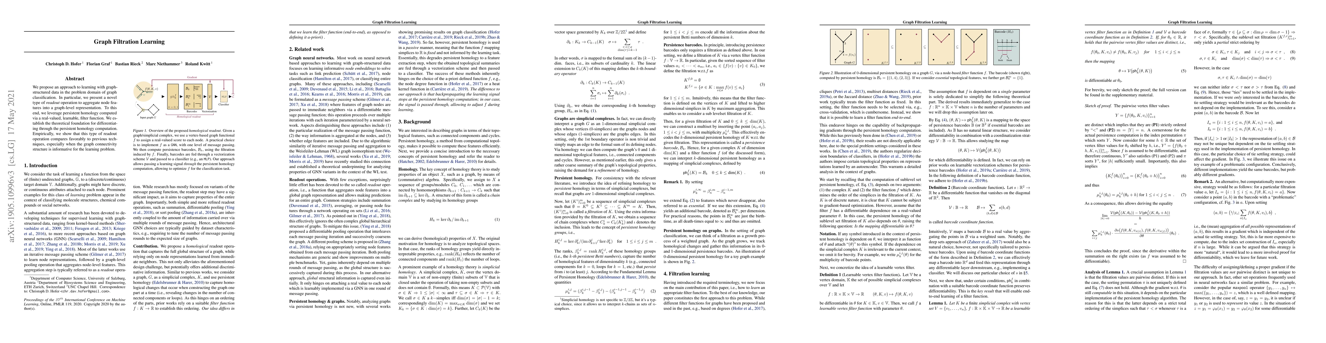 We propose an approach to learning with graph-structured data in the problem domain of graph classification. In particular, we present a novel type of readout operation to aggregate node features into a graph-level representation. To this end, we leverage persistent homology computed via a real-valued, learnable, filter function. We establish the theoretical foundation for differentiating through the persistent homology computation. Empirically, we show that this type of readout operation compares favorably to previous techniques, especially when the graph connectivity structure is informative for the learning problem.