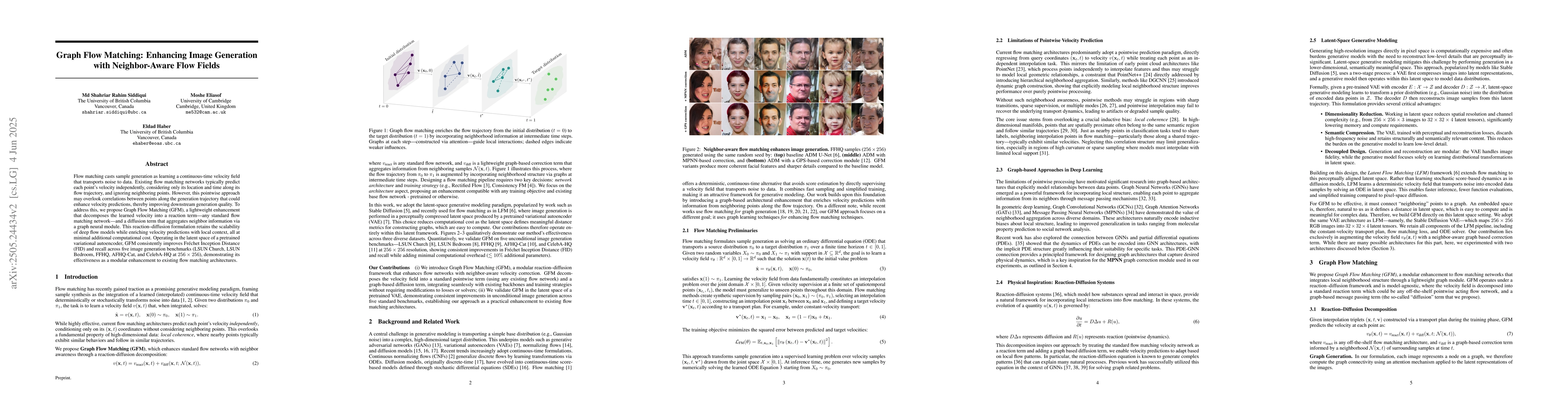Graph Flow Matching enhances image generation by incorporating neighboring point information into flow matching velocity predictions, improving downstream generation quality with minimal additional computational cost.