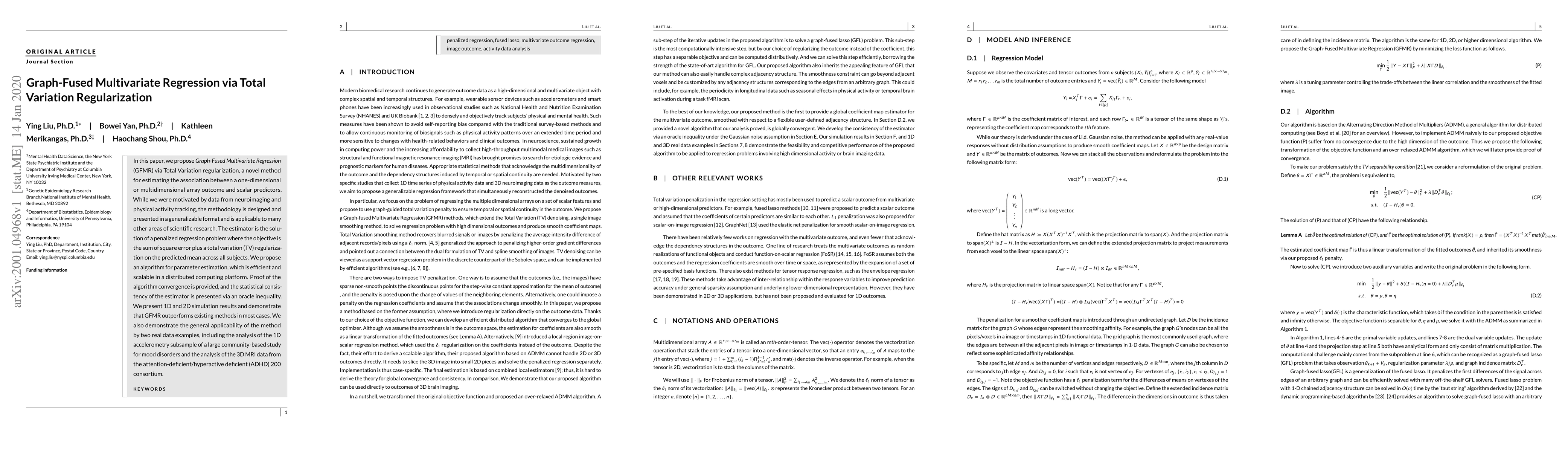 This paper introduces Graph-Fused Multivariate Regression (GFMR) using Total Variation regularization to estimate associations between outcomes and predictors, demonstrating superior performance over existing methods in simulations and real-world neuroimaging and activity tracking data. The method is scalable and statistically consistent.