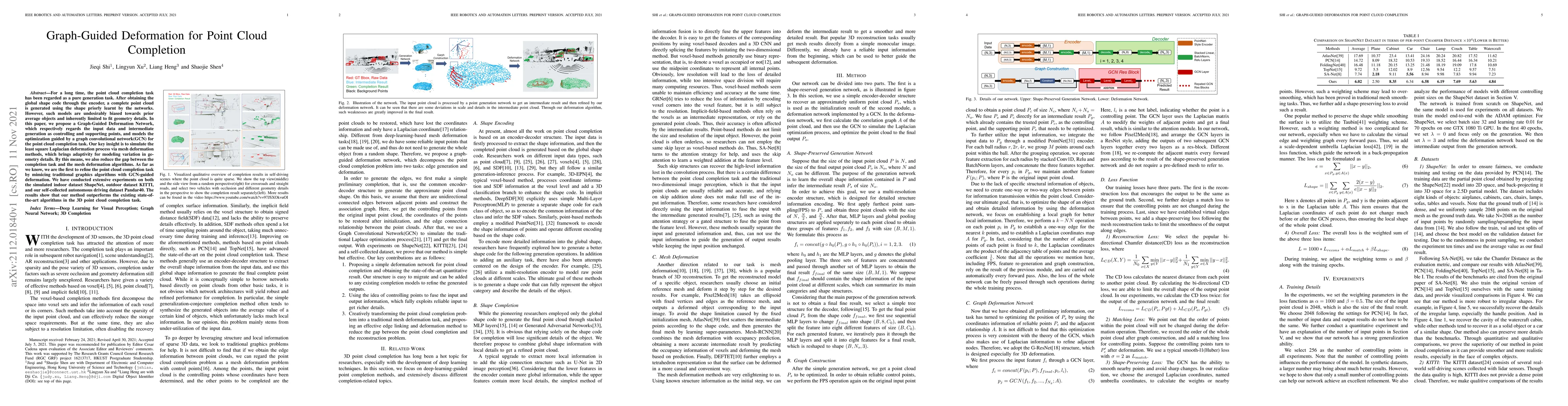 This paper introduces a Graph-Guided Deformation Network for point cloud completion, utilizing a graph convolutional network to optimize the generation process. This method mimics mesh deformation techniques to enhance adaptivity and detail modeling, leading to superior performance compared to existing algorithms.