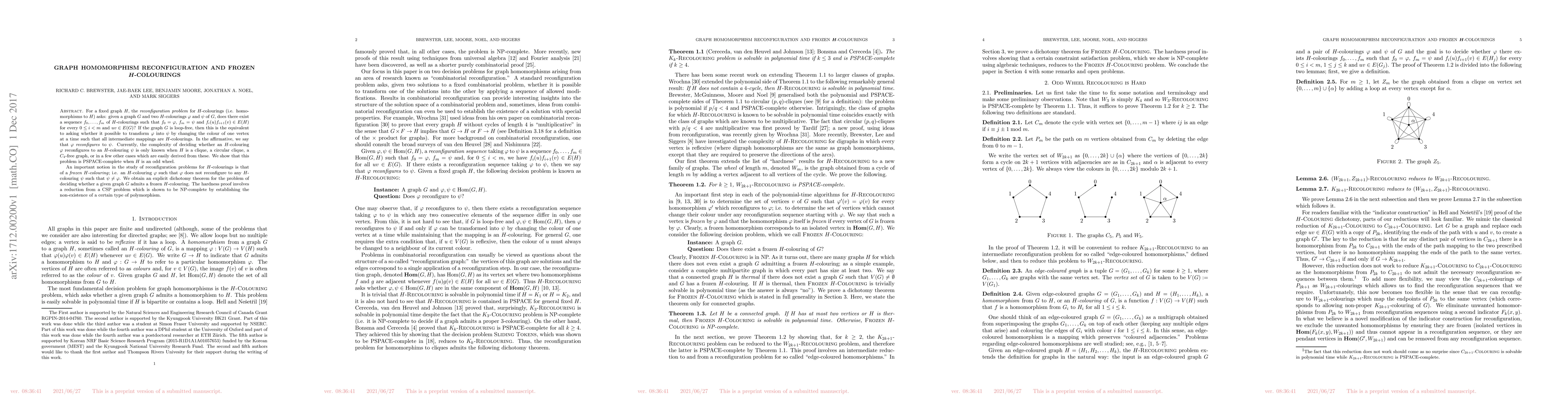 homomorphisms to $H$) asks: given a graph $G$ and two $H$-colourings $\varphi$